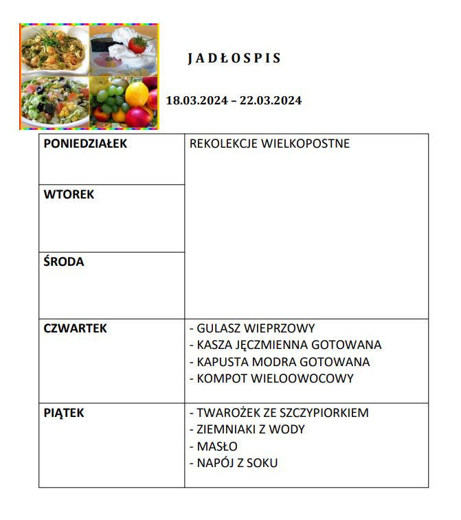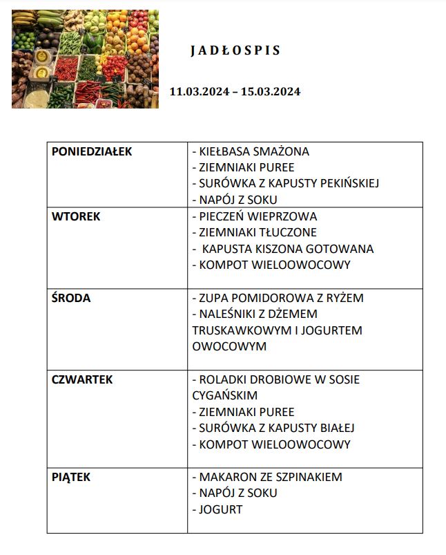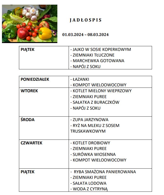 - Rodzice do 27. dnia każdego miesiąca poprzedzającego korzystanie z obiadów, składają deklarację u intendentki szkoły o ilości obiadów w kolejnym miesiącu.