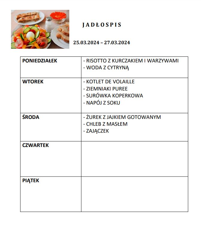 - Każdy korzystający z obiadów otrzymuje karnet, który zobowiązany jest przedstawić pani wydającej obiad.