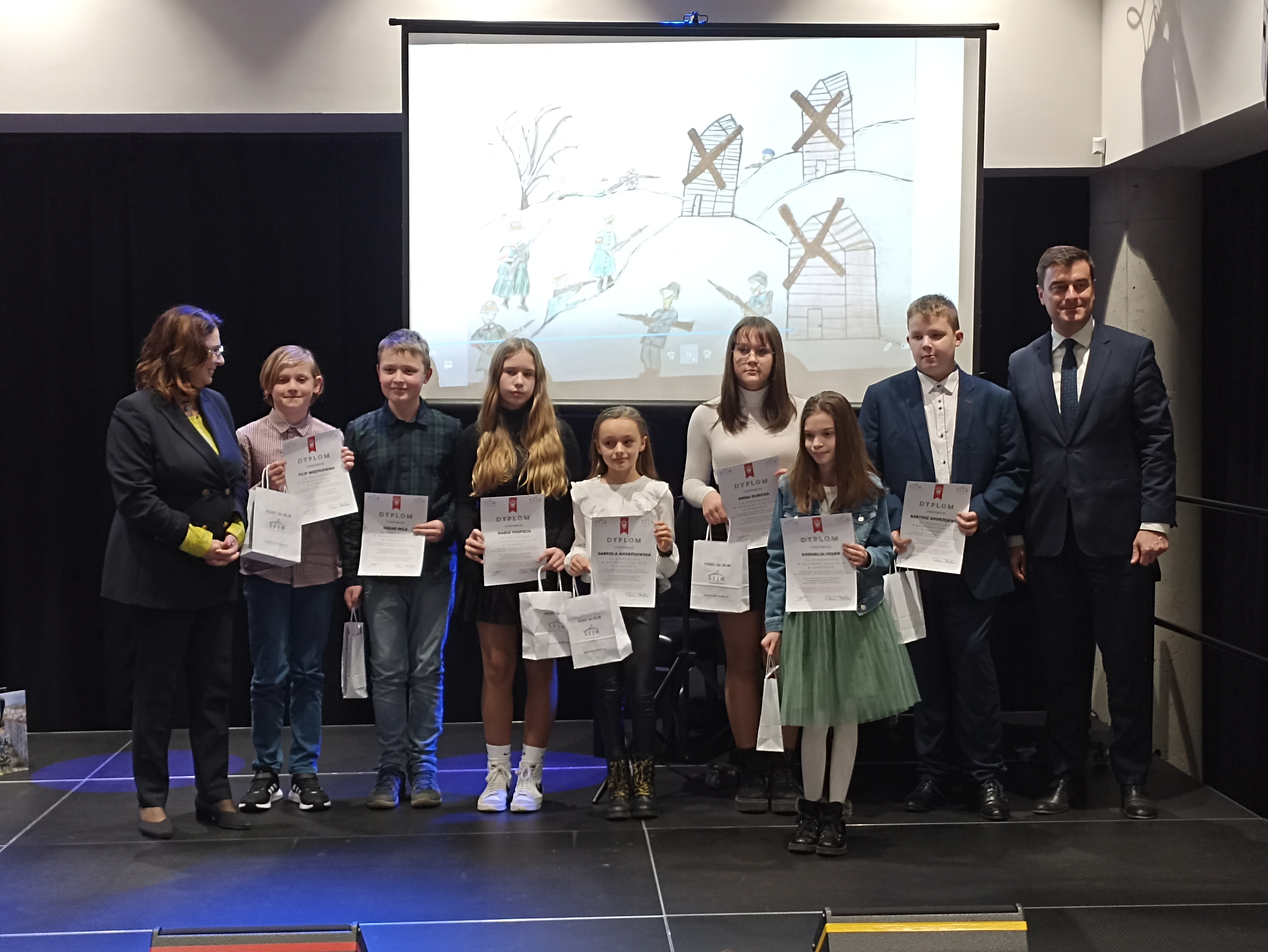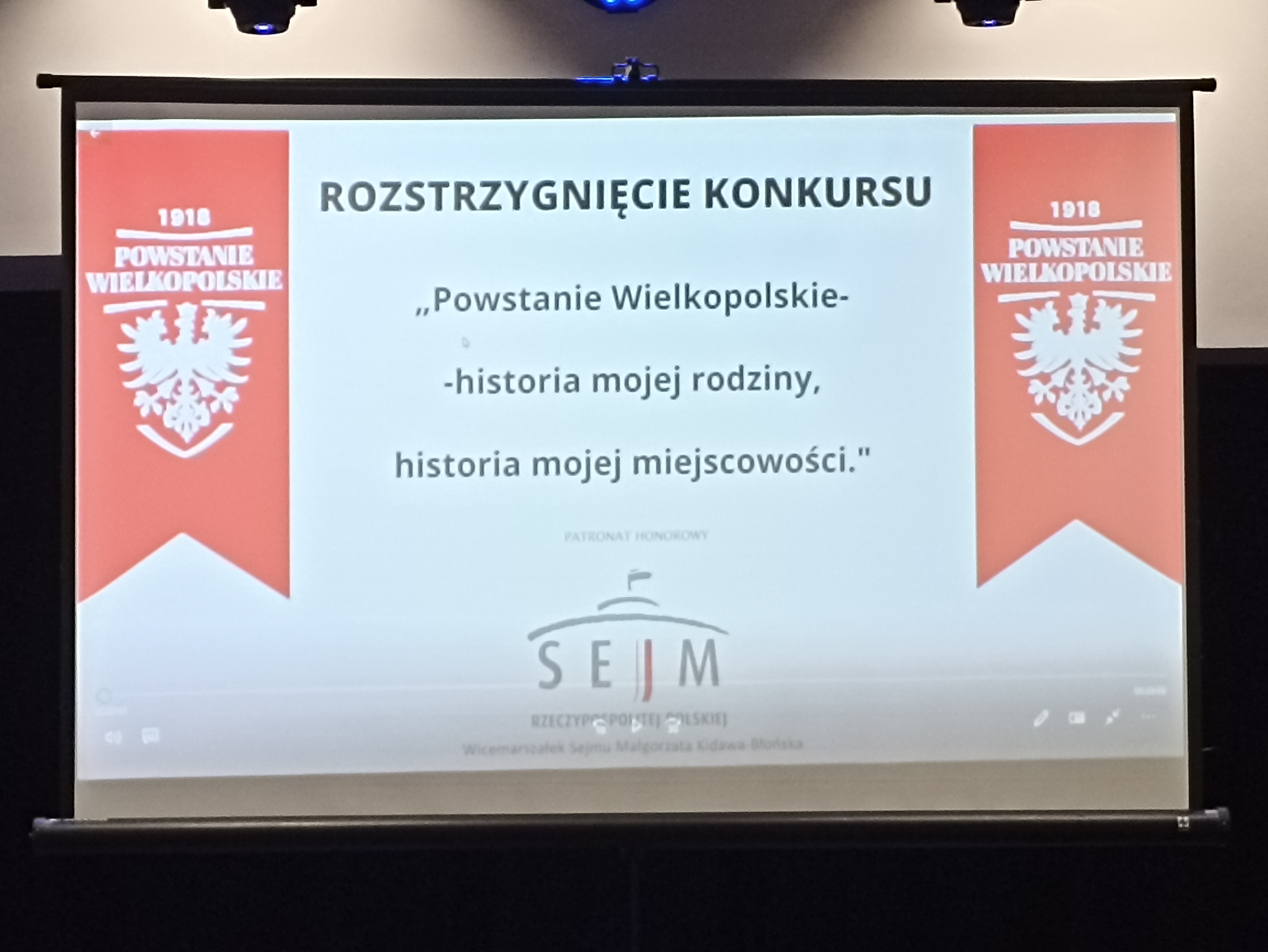 W ramach tegorocznych obchodów NARODOWEGO DNIA ZWYCIĘSKIEGO POWSTANIA WIELKOPOLSKIEGO odbył się konkurs pod patronatem Sejmu RP „ POWSTANIE WIELKOPOLSKIE – HISTORIA MOJEJ RODZINY, HISTORIA MOJEJ MIEJSCOWOŚCI” . My Wielkopolanie pamiętamy o historii naszego regionu i pamiętamy też o poświęceniu naszych przodków, dlatego wielu uczniów z naszej szkoły przygotowało prace konkursowe. Z dumą przedstawiali w pracach działania powstańców na jutrosińskim rynku , w okolicach Jutrosina , a nawet bezpośrednio swoich przodków , którzy w powstaniu walczyli. Prace naszych uczniów zostały przez jury konkursowe docenione i nagrodzone na uroczystym podsumowaniu konkursu, które odbyło się w Miejskiej Bibliotece Publicznej w Lesznie przy udziale Wicemarszałek Sejmu p. Małgorzaty Kidawy- Błońskiej.
