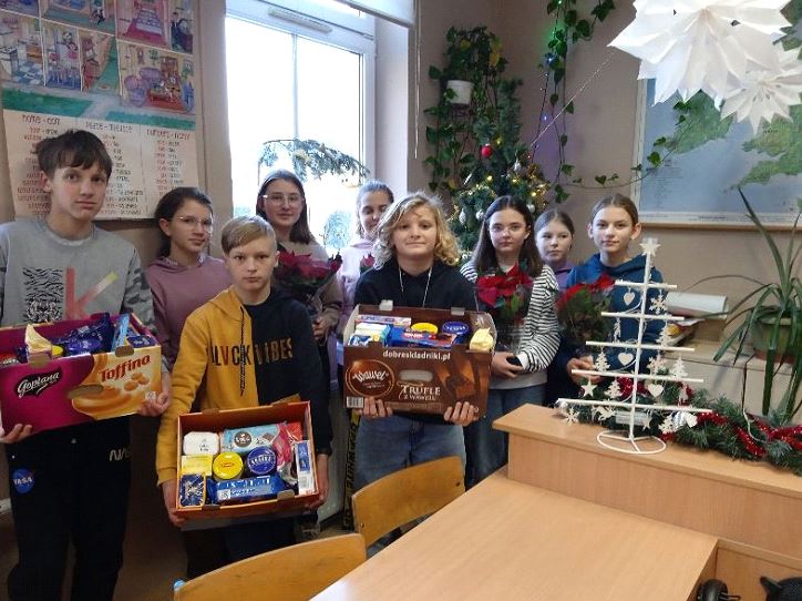 Klasa VI b jest jedną z grup, do której uczęszczają ukraińskie dzieci. Wierzymy, że dzielenie się opłatkiem, wspólne śpiewanie kolęd, kosztowanie świątecznych przysmaków i radość z prezentów przywróciły naszym przyjaciołom ufność w lepsze jutro.