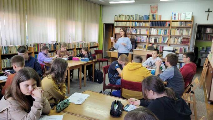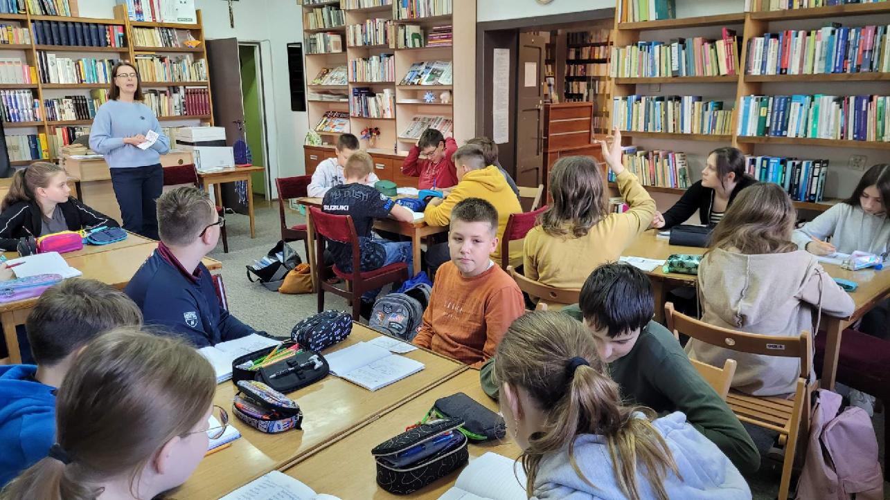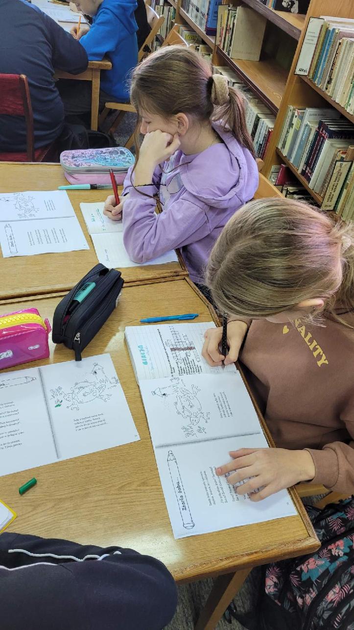 14 listopada 2022r. jutrosińską bibliotekę odwiedzili uczniowie 6a uczęszczający na kółko ortograficzne w szkole. Uzupełniając krzyżówkę i wykonując różne ortograficzne ćwiczenia, przypomnieli sobie zasady pisowni z "rz" i " ż". Na koniec uczniowie mieli do uzupełnienia tekst "naszpikowany" trudnościami ortograficznymi. Oj trzeba było trochę "połamać główkę", 🙂 ale wszyscy sobie świetnie poradzili. Gratulujemy!