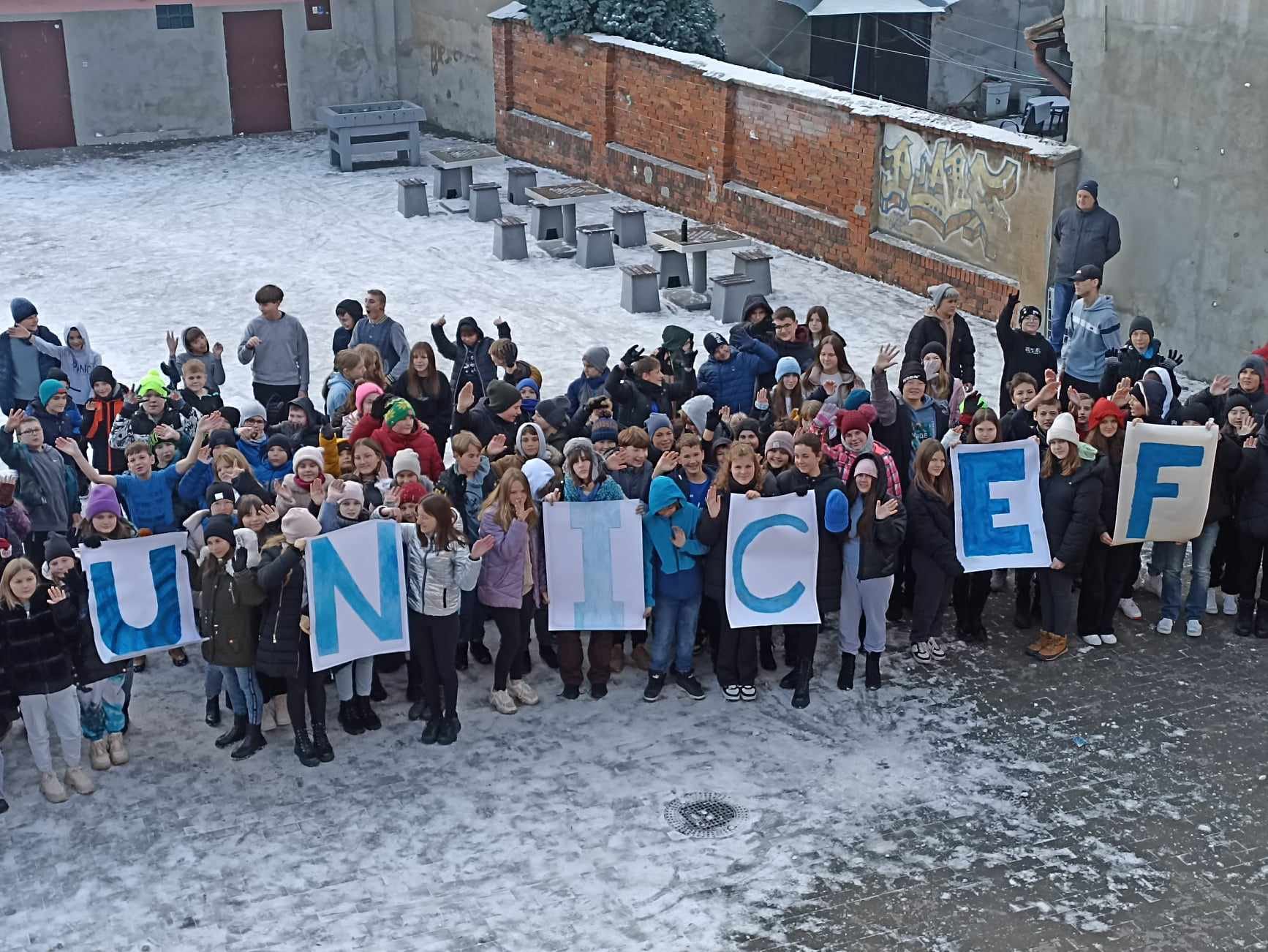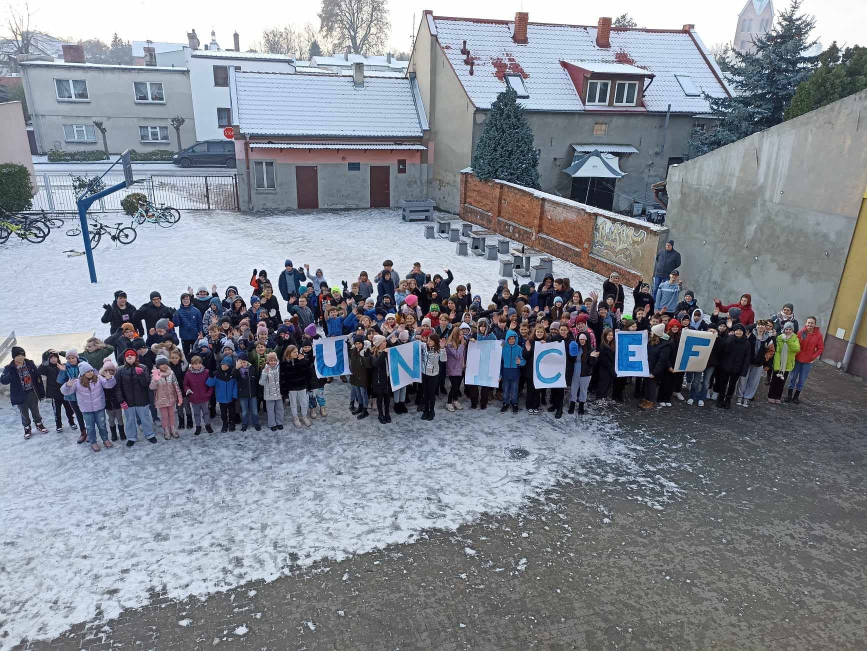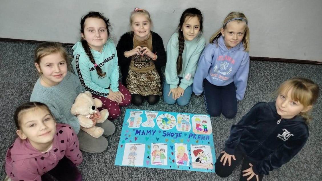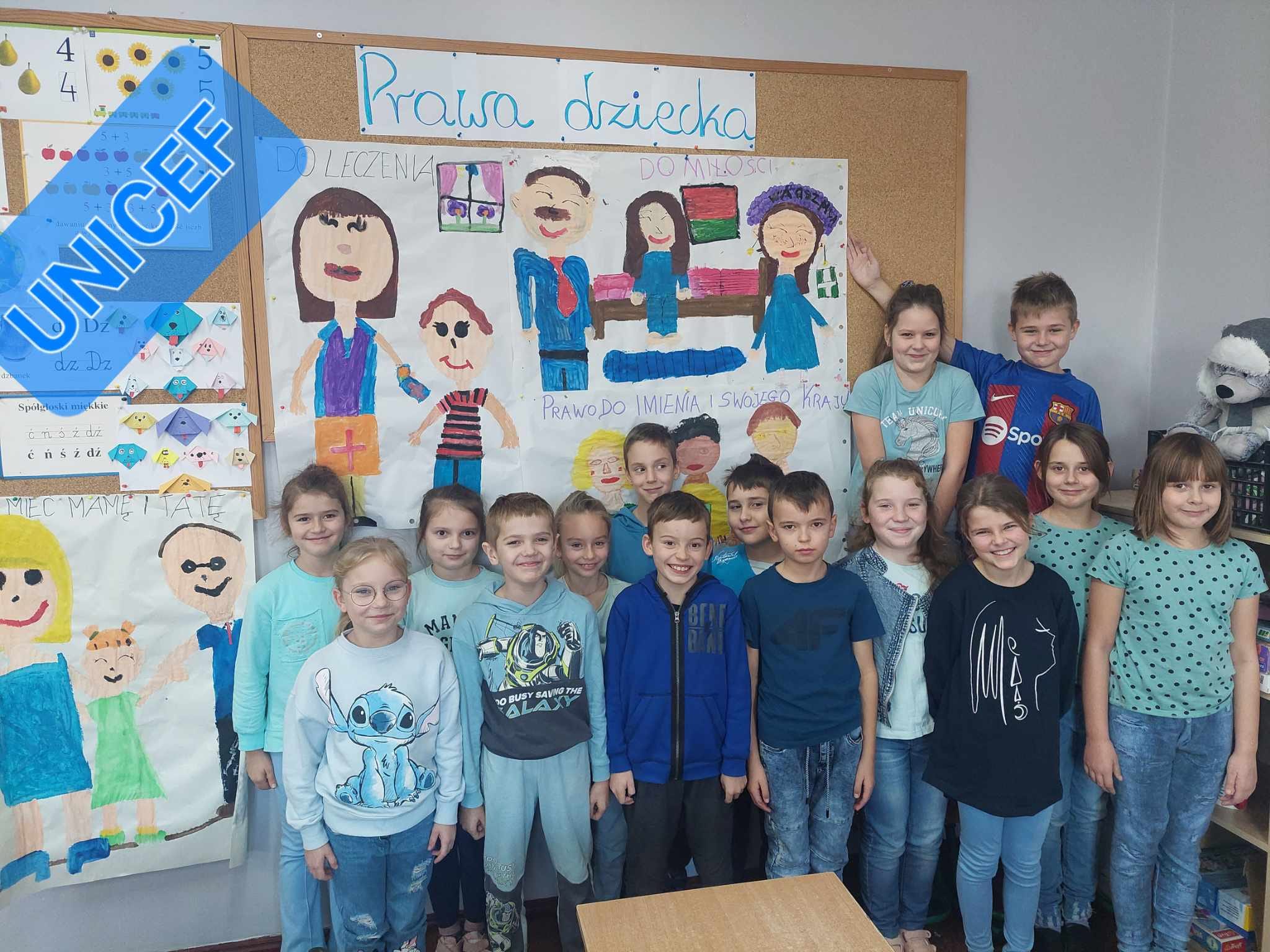 W ubiegłym tygodniu w naszej szkole organizowaliśmy Międzynarodowy Dzień Praw Dziecka. Uczniowie naszej szkoły tworzyli plakaty z hasłami przedstawiającymi prawa dzieci na świecie. Razem dla upamiętnienia tego wydarzenia stanęliśmy do zbiorowego zdjęcia z logo UNICEF-U. Na twarzach dzieci dominował uśmiech, a w garderobie kolor niebieski. Pamiętajmy dzieci jak dorośli mają swoje prawa.