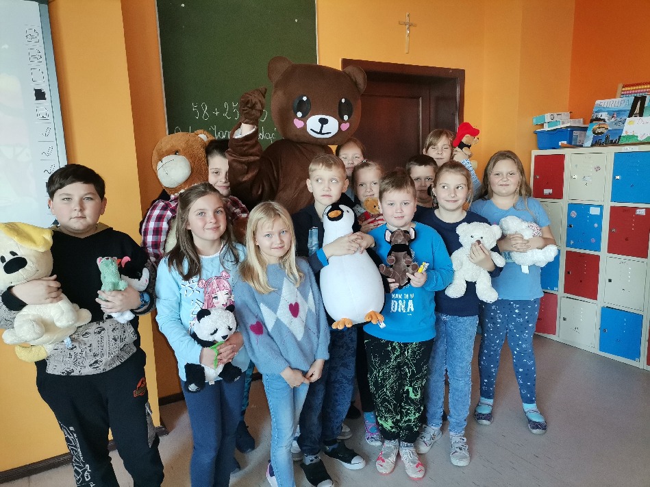 W naszej szkole obchodziliśmy Światowy Dzień Pluszowego Misia. Przy współpracy z Biblioteką Publiczną w Jutrosinie i Biblioteką szkolną nasz Samorząd Uczniowski zrobił niespodziankę młodszym uczniom – odwiedził ich dziś Miś. Były tańce z misiem i konkursy, a przede wszystkim młodsi uczniowie dowiedzieli się skąd wzięła się ta tradycja misiowego święta.