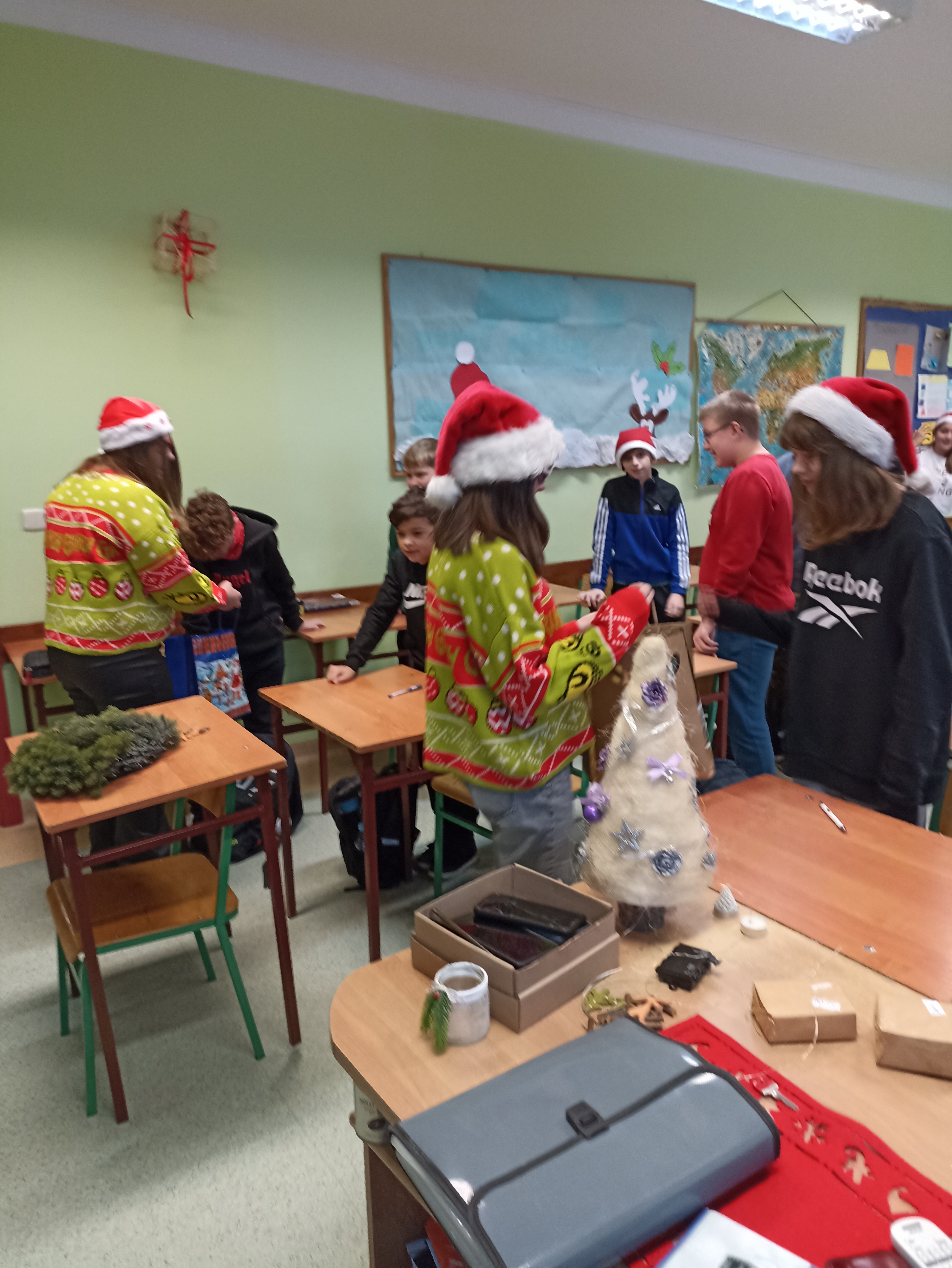 6 grudnia jest od wielu lat dniem, w którym w naszej szkole podtrzymujemy mikołajkową tradycję. Od samego rana z każdej strony kręcili się po korytarzach i w klasach uczniowie ubrani na czerwono, w pięknych mikołajkowych czapkach.