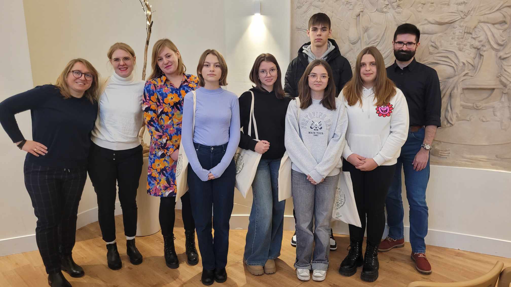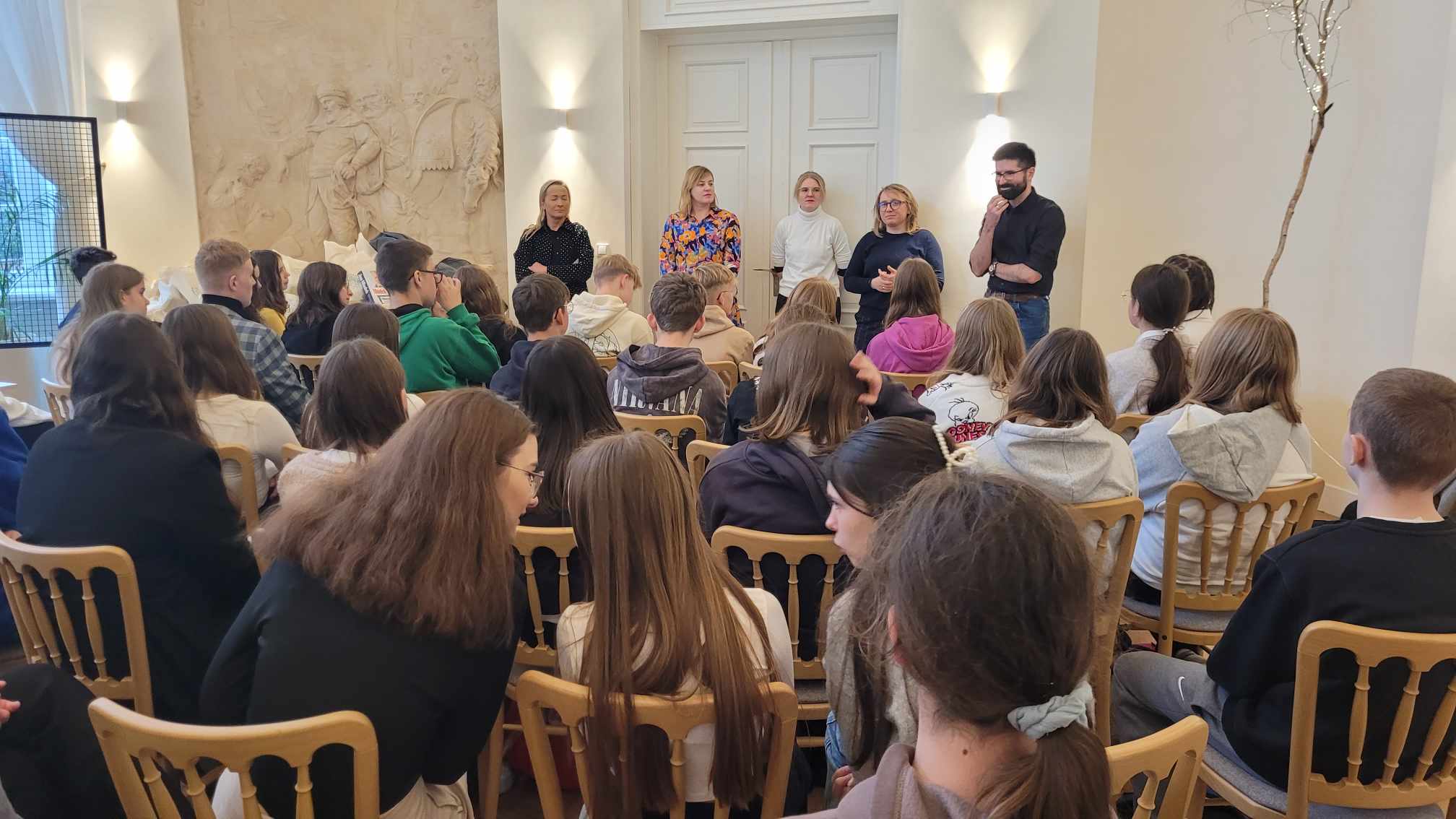 28 listopada 2023 r. odbyła się kolejna edycja turnieju polonistycznego organizowanego przez Fundację Rodziny DUDA im. Maksymiliana Dudy. Naszą szkołę reprezentowali uczniowie klasy VIII a: Aleksandra May, Julia Pilujska, Oliwia Robakowska, Natalia Pawlicka, Szymon Rolnik. Ich zadanie polegało na rozwiązaniu testu, którego pytania dotyczyły zagadnień z etymologii, frazeologii, fontyki, słowotwórstwa, leksykografii, ortografii i interpunkcji. Po napisaniu testu uczestnicy wzięli udział w warsztatach dotyczących " Prostej Polszczyzny". Konkurs cieszył się dużym zainteresowaniem, bo wzięło w nim udział około 60 osób. W pamięci uczniów na pewno zostanie dobra zabawa połączona z nauką i kolejne doświadczenie życiowe. Dziękujemy