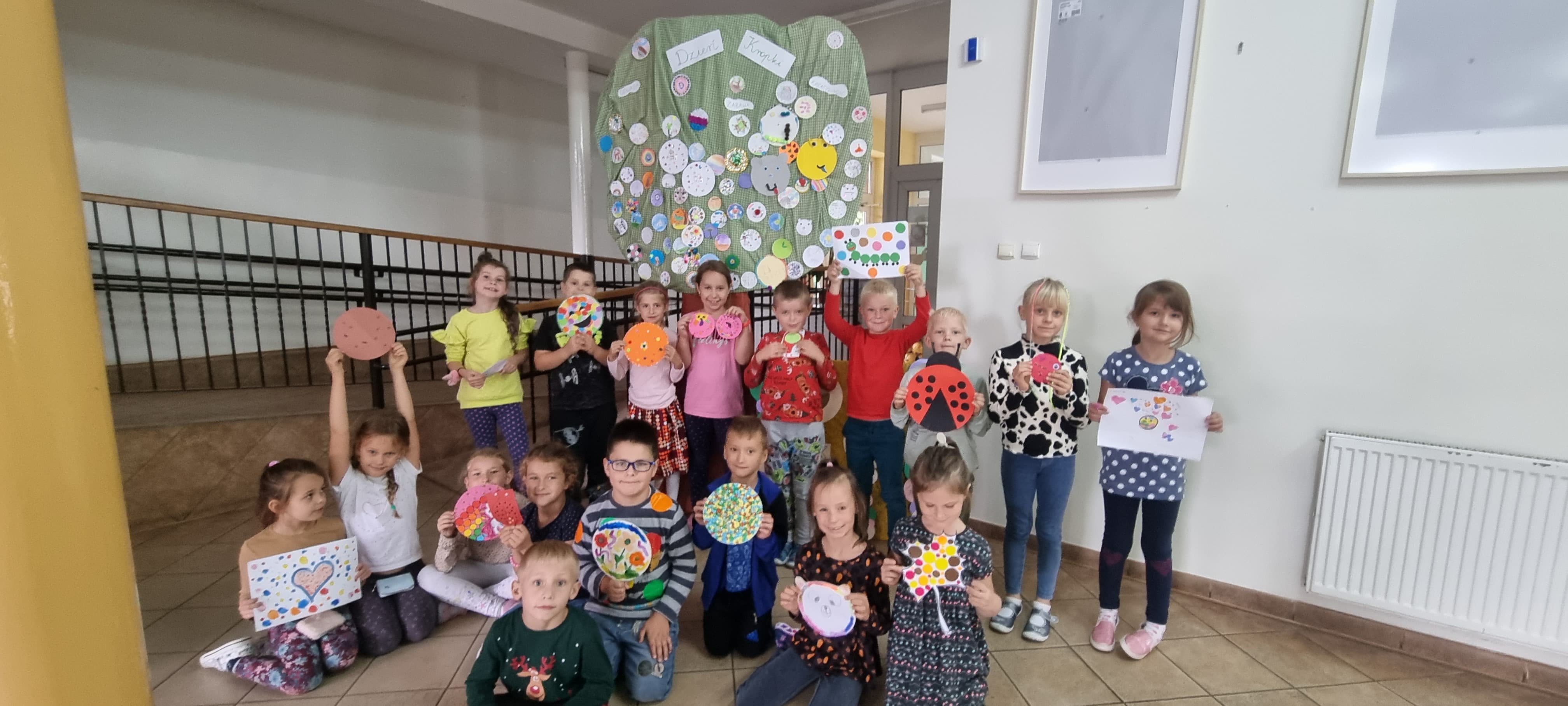 Pragniemy aby młoda bohaterka stała się inspiracją. Dlatego na szkolnym korytarzu pojawiło się drzewo, na którym uczniowie zawiesili swoją kropkę – jedyną, niepowtarzalną! Drzewo uświadamia nam i przypomina, że każdy z nas jest wyjątkowy. Podczas zajęć zaprezentowana została opowieść o Vashti. Odbyły się różne zajęcia kreatywne. Chętni uczniowie przedstawili swoje pasje. Okazało się, że wśród naszych dzieci są: zdobywcy trofeów w sztukach walki, wspaniałe tancerki, pasjonaci piłki nożnej, znawcy dinozaurów, miłośnicy zwierząt domowych, koniarze, fanatycy kosmosu i zapaleni grzybiarze.