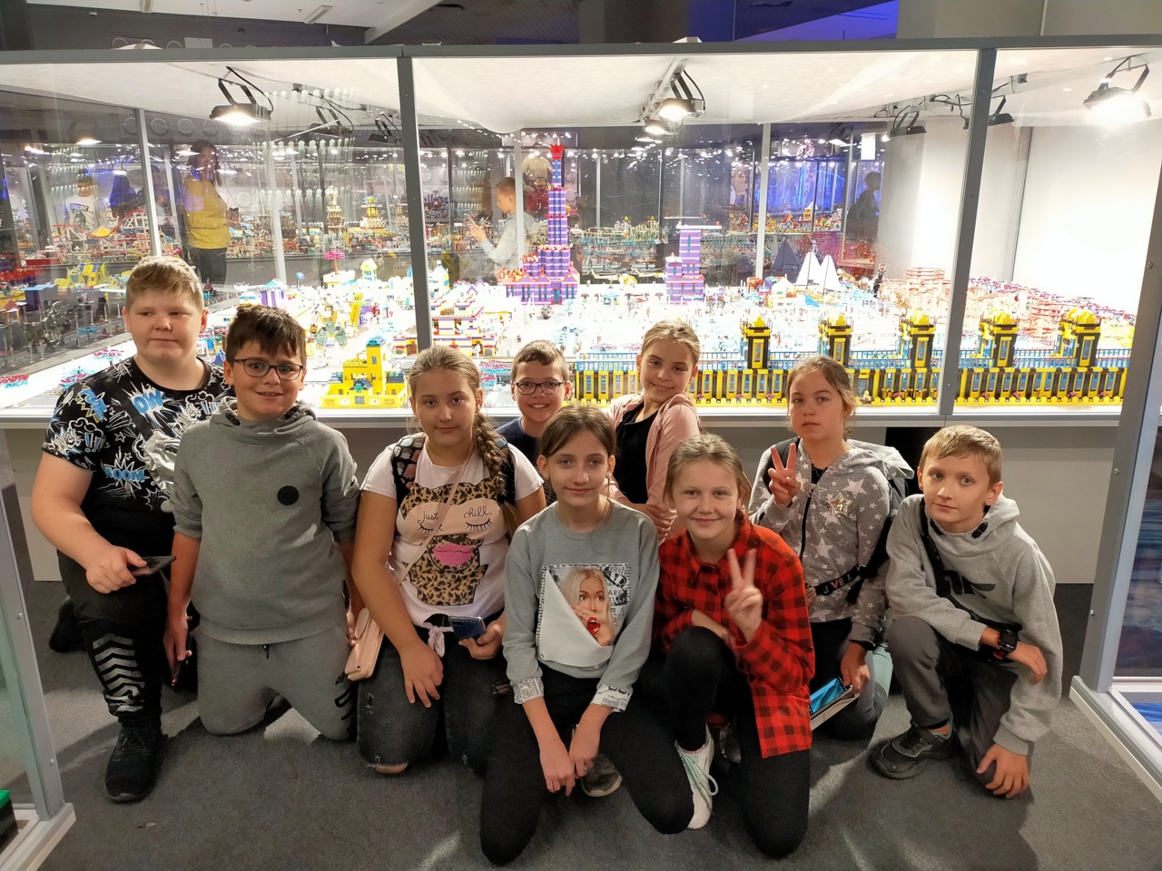 Dnia 20 września 2022r. uczniowie klasy 4b, 5b i 6a wybrali się wraz ze swoimi wychowawcami na wycieczkę do Wrocławia. Mieli możliwość obejrzeć w SKY TOWER największą w Polsce wystawę budowli wykonaną z klocków LEGO - statek kosmiczny rodem z „Gwiezdnych wojen”, krzywą wieżę w Pizie, scenę filmową z serialu „Dom z papieru”, pingwiny z Madagaskaru, paryskie muzeum Luwr… - te i inne budowle, w sumie 100 makiet. Okazało się , że do ich budowy użyto aż siedem milionów klocków! Kolejną atrakcją była interaktywna kolekcja obrazów 3D, która pozwoliła stworzyć dzieciom unikalne i wyjątkowe zdjęcia. Po tej dawce wrażeń dzieci miło spędziły czas, relaksując się i zażywając kąpieli wodnych we wrocławskim Aquaparku.