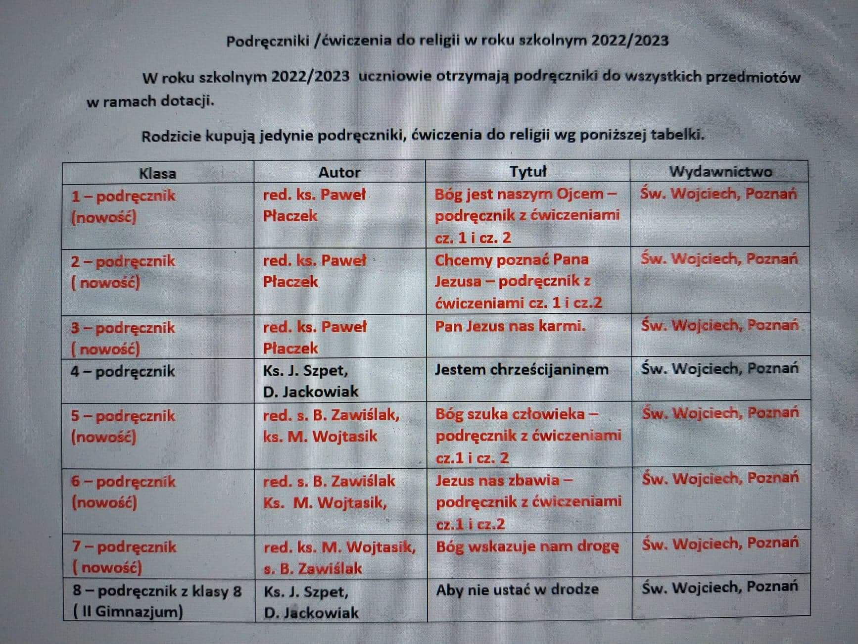 Podręczniki ćwiczenia z religii