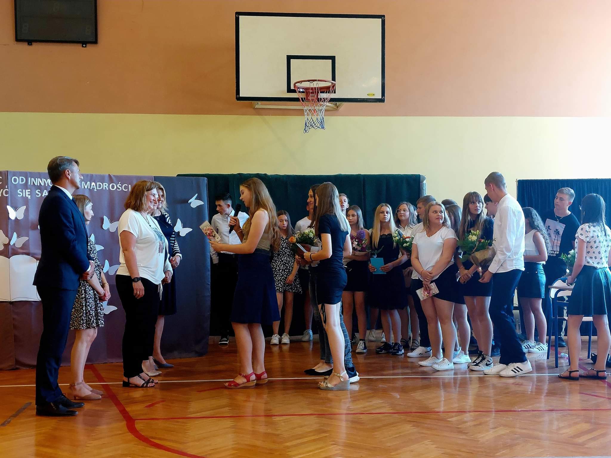 Uroczystość "Pożegnania uczniów klas ósmych" odbyła się dnia 23 czerwca, w sali gimnastycznej ZS w Jutrosinie. P. dyrektor D. Ugorek w raz z wychowawcami klas: p. B. Bijoch, p. K. Żarczyńska, p. W. Piotrowski, p. J. Wojtkowiak oraz p. M. Wawrzyniak wręczyli osobiście ósmoklasistom świadectwa ukończenia szkoły, a rodzicom uczniów wyróżnionych Listy gratulacyjne.