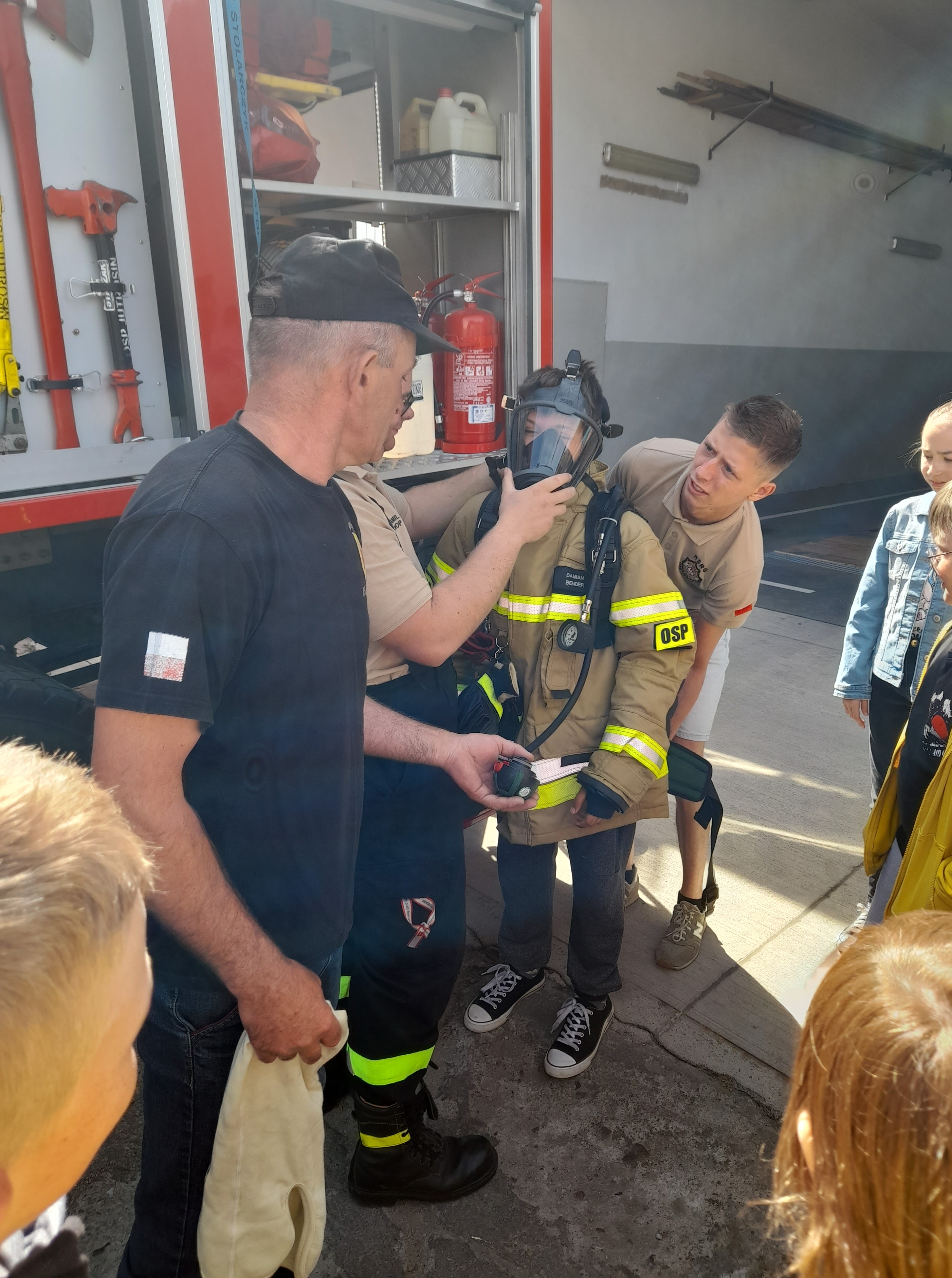 Uczniowie zapoznali się ze specyfiką pracy strażaków – ochotników. Zaprezentowano dzieciom dokładnie różnorodny sprzęt, z którego mogą oni korzystać podczas akcji. Okazało się, że praca strażaka wymaga wielu poświęceń i umiejętności radzenia sobie w trudnych okolicznościach.