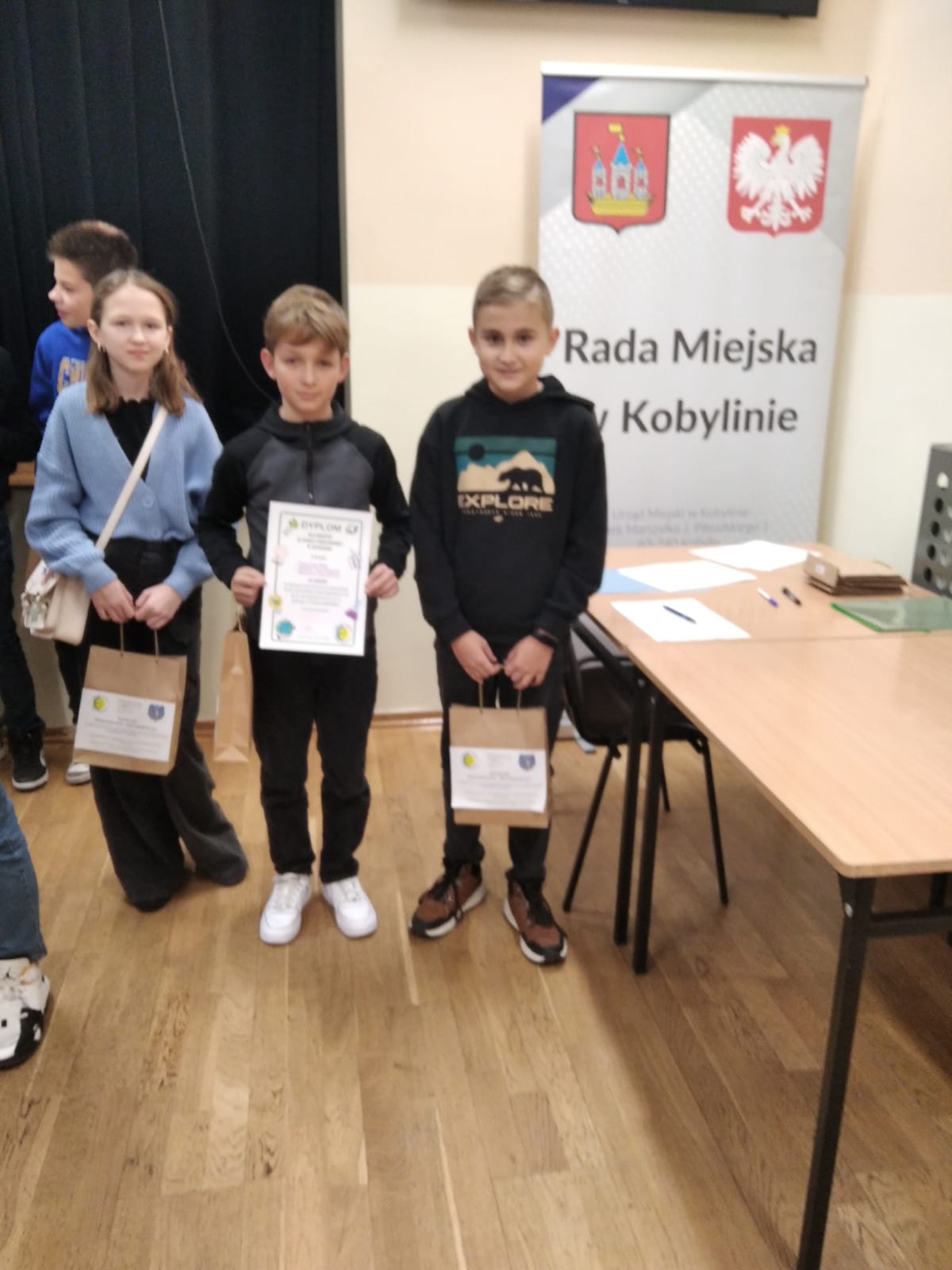 Konkurs ekologiczno - przyrodniczy w Kobylinie. W ubiegły piątek uczniowie z naszej szkoły: Bartosz Tyczyński, Wiktor Kaczmarek i Patrycja May wzięli udział w konkursie ekologiczno- przyrodniczym w Kobylinie. Konkurs cechowała praca zespołowa w dwóch etapach: rozwiązanie testu oraz przeprowadzeniu kilku doświadczeń. Nasi uczniowie otarli się o podium, niestety w dogrywce nie dopisało nam szczęście. Serdecznie gratulujemy odwagi i dziękujemy za reprezentowanie naszej szkoły. Trzymamy kciuki za dalsze sukcesy.