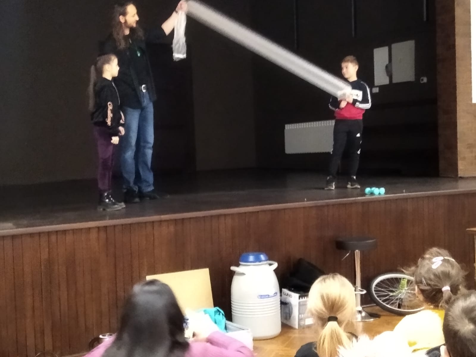 Pokaz fizyko- chemiczny. W ubiegły czwartek w naszej szkole gościliśmy pana Mateusza z firmy Edu event. Dzieci mogły zobaczyć spektakl doświadczeń z zakresu fizyki i chemii. Okazało się to spotkanie nietypowa lekcja i dostarczyło wszystkim nie lada emocji. Dziękujemy za spotkanie panie Mateuszu i liczymy na dalszą współpracę.