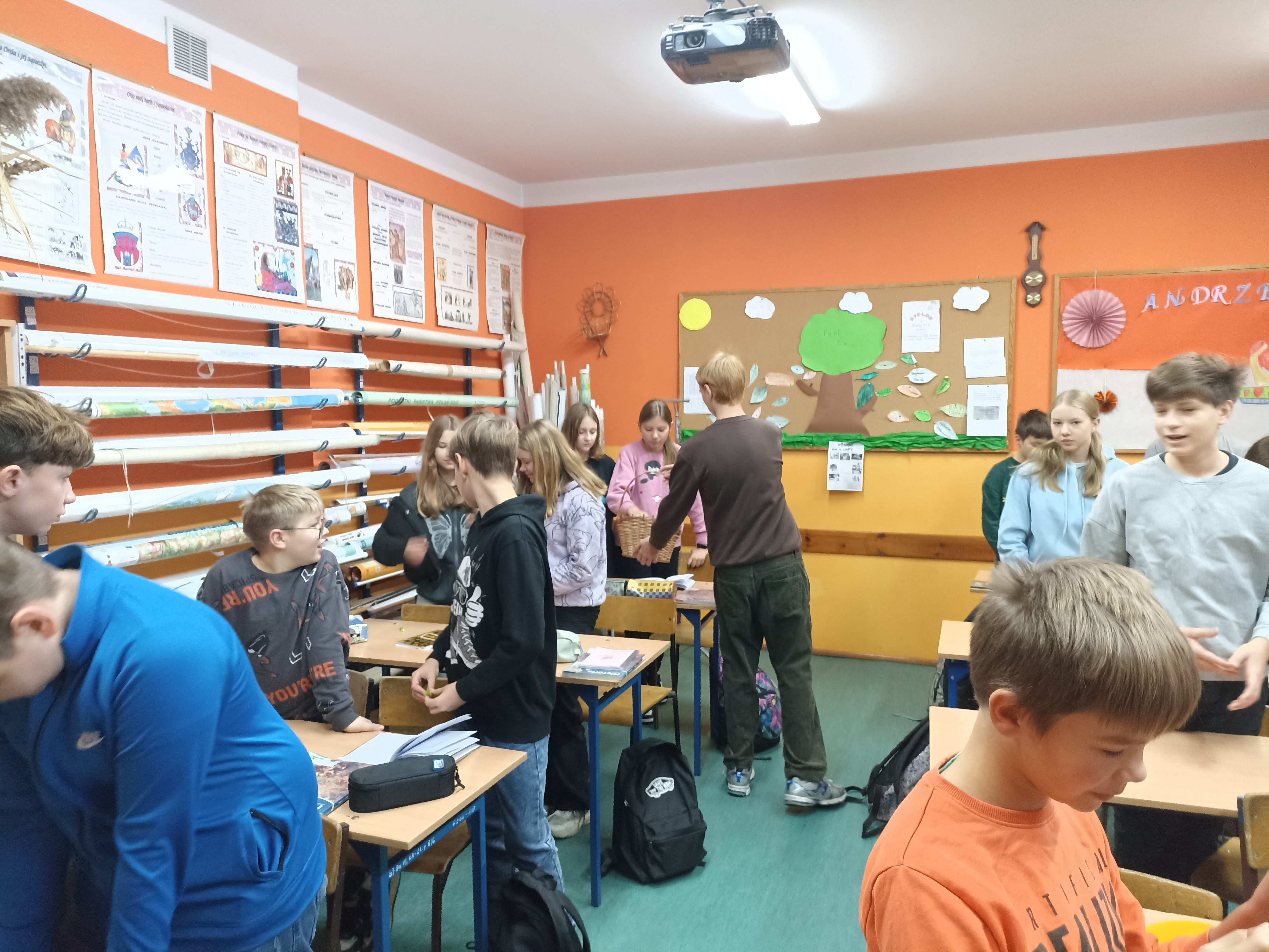 Samorząd Uczniowski z okazji dnia życzliwości w starszych klasach obdarzał wszystkich uśmiechem i cukierkiem życząc miłego dnia!