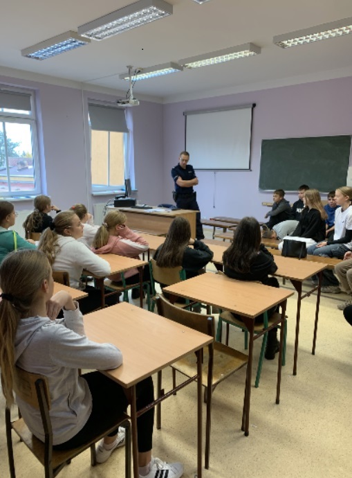 W ubiegłym tygodniu odbyło się spotkanie uczniów klas 4-8 z asystentem do spraw nieletnich i patologii Wydziału Prewencji Komendy Powiatowej Policji w Rawiczu – panem Hubertem Woźnym. Z uczniami zostały przeprowadzone rozmowy na temat konsekwencji niewłaściwych zachowań, do których niestety dochodziło na terenie naszej szkoły: wyłudzenie pieniędzy, niszczenie mienia, „hejtowanie w sieci”. Uczniowie dowiedzieli się o placówce wychowawczej o profilu resocjalizacyjnym (tzw.”poprawczaku”), o Sądzie Rodzinnym i opiece kuratora.