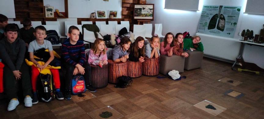 W „Domu Drzewa" odbyły się warsztaty, na których uczniowie mieli okazję poznać mieszkańców pobliskich lasów oraz specyfikę ich życia. Ponadto zobaczyli suszarnie szyszek, wykonali zadania przyrodnicze oraz pracę techniczną - decoupage na drewnie. Wielu ciekawostek dowiedzieli się z filmu o Dolinie Baryczy, która zachwyca są naturalnością i pięknymi krajobrazami. Na zakończenie, wzięli lornetki w dłonie i ruszyli do lasu aby przyjrzeć się z bliska jesiennym zmianom w przyrodzie.