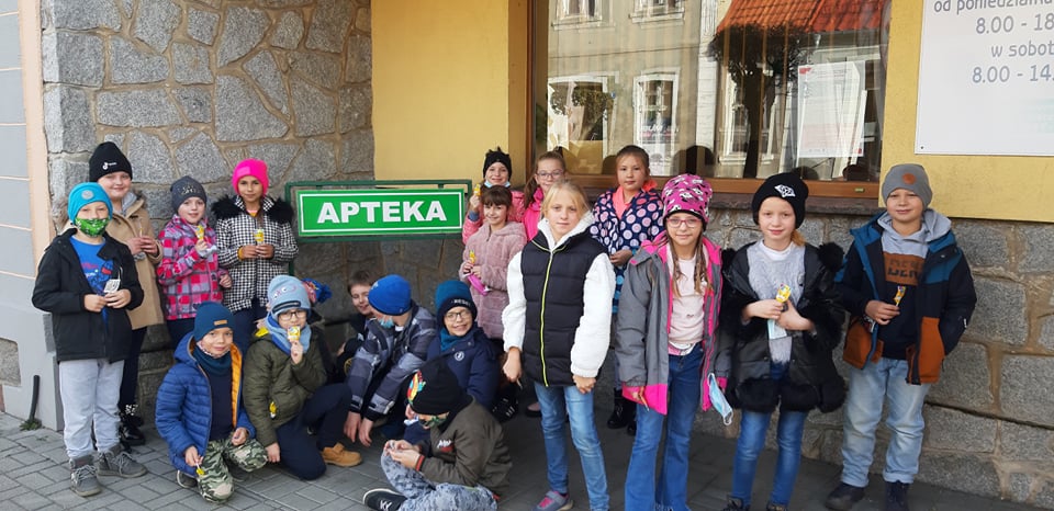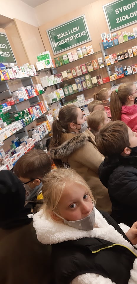 Dnia 27.10.2021r. uczniowie klasy IIa wybrali się na wycieczkę do Apteki Rodzinnej w Jutrosinie. Celem było poznanie pracy farmaceuty. Większość uczniów po raz pierwszy miała okazje poznać aptekę ze strony zaplecza. Pani farmaceutka opowiedziała dzieciom o swojej pracy. Wytłumaczyła, co to jest recepta, jak ją można realizować i kto może kupować leki. Dzieci dowiedziały się również, że zostanie farmaceutą to długa i ciężka droga, a praca w aptece jest bardzo ważna i odpowiedzialna.