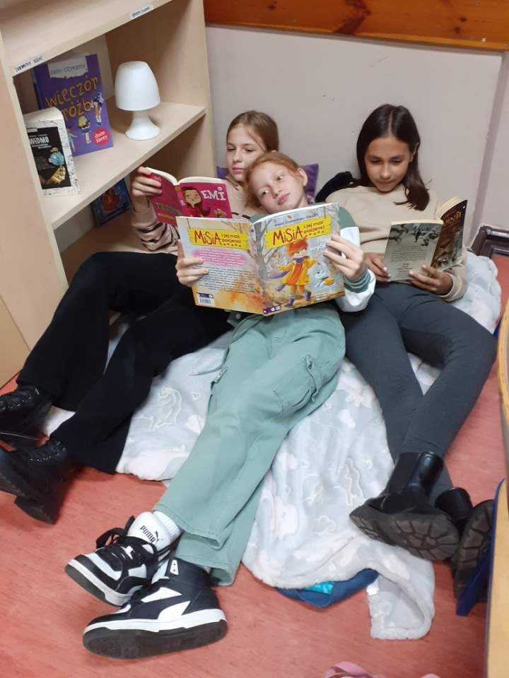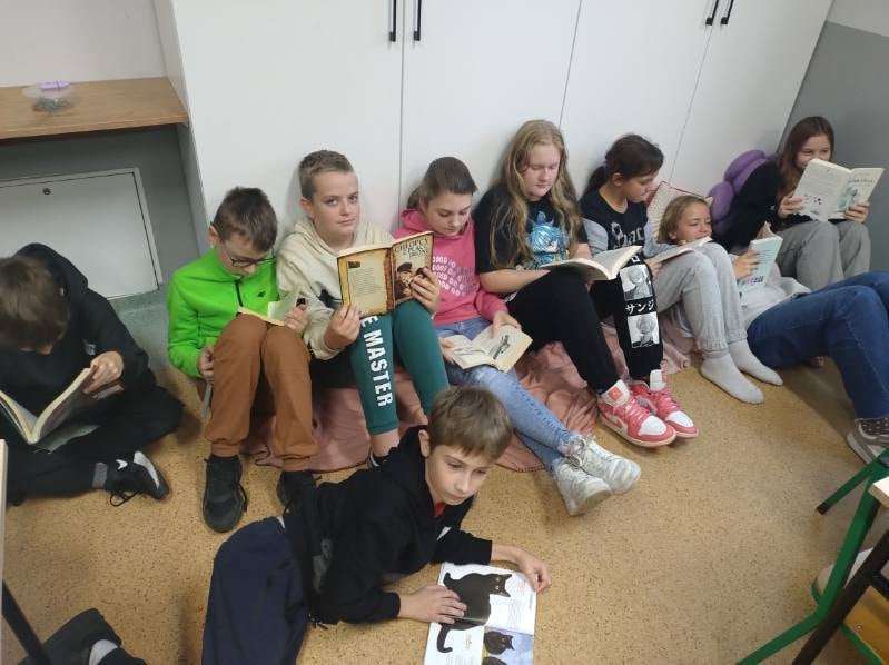 W dniu 25.10.2023 r. uczniowie naszej szkoły przyłączyli się do IV miedzynarodowej edycji VIII ogólnopolskiej akcji bicia rekordu w czytaniu na przerwie. Akcja realizowana była w ramach Międzynarodowego Miesiąca Bibliotek Szkolnych oraz kampanii społecznej "Cała Polska czyta dzieciom". Uczniowie w różnych miejscach szkoły czytali książki wypożyczone z biblioteki szkolnej oraz ulubione pozycje z domowych biblioteczek. Dziękujemy wszystkim, którzy wzięli udział w akcji, propagując w ten sposób czytelnictwo i możliwość spędzenia przerwy w inny sposób niż z telefonem komórkowym przy twarzy.