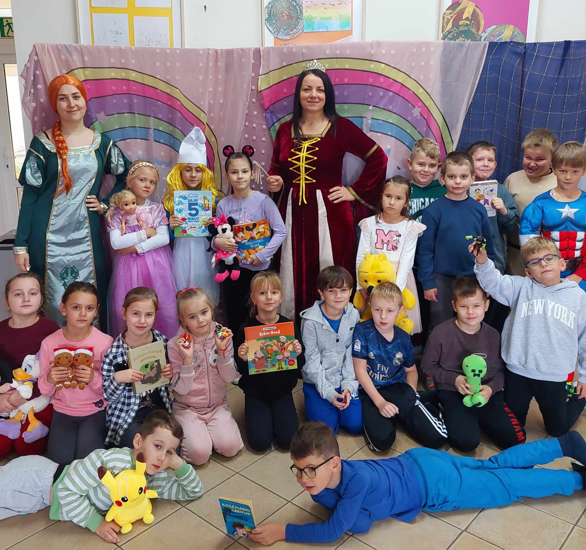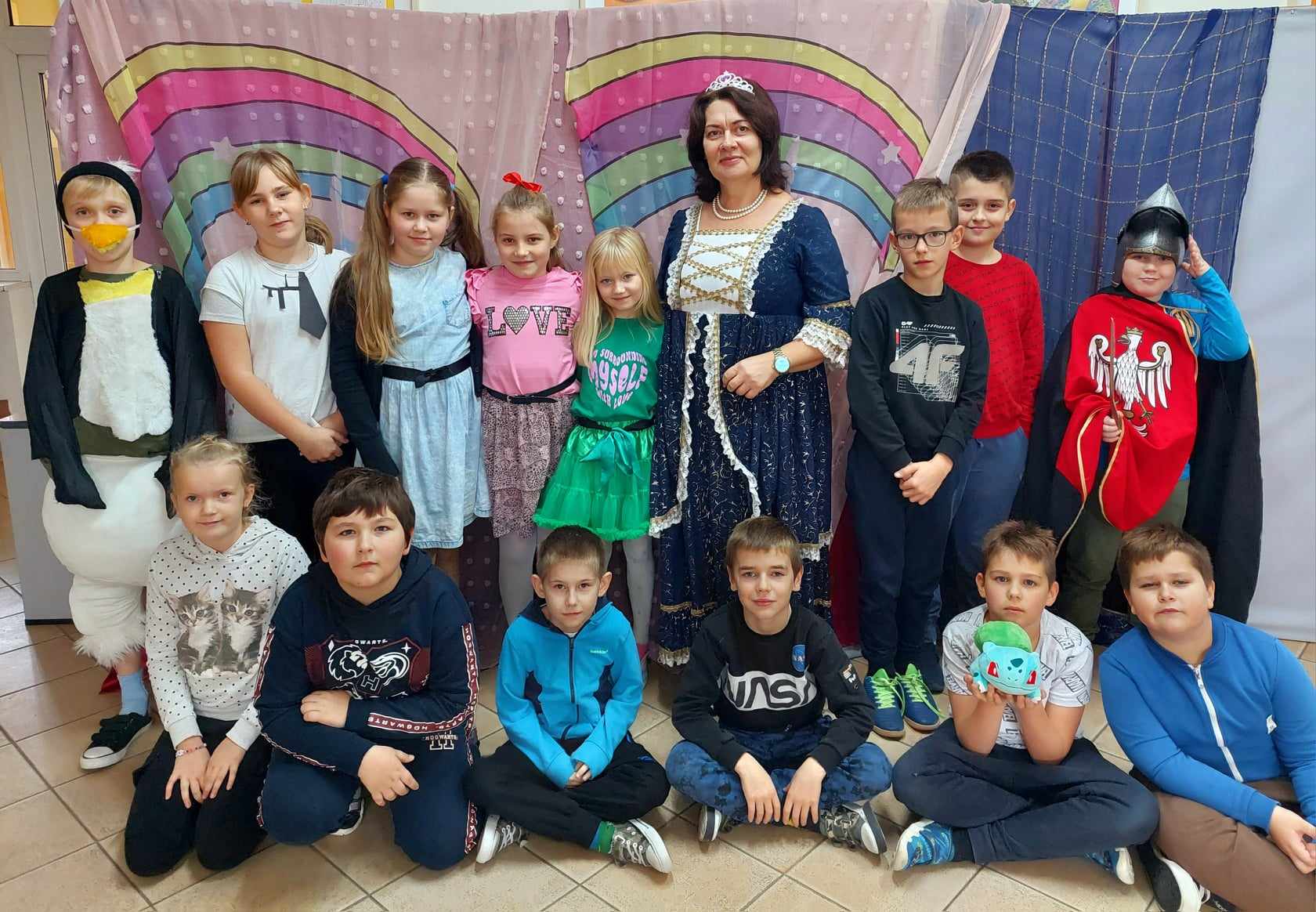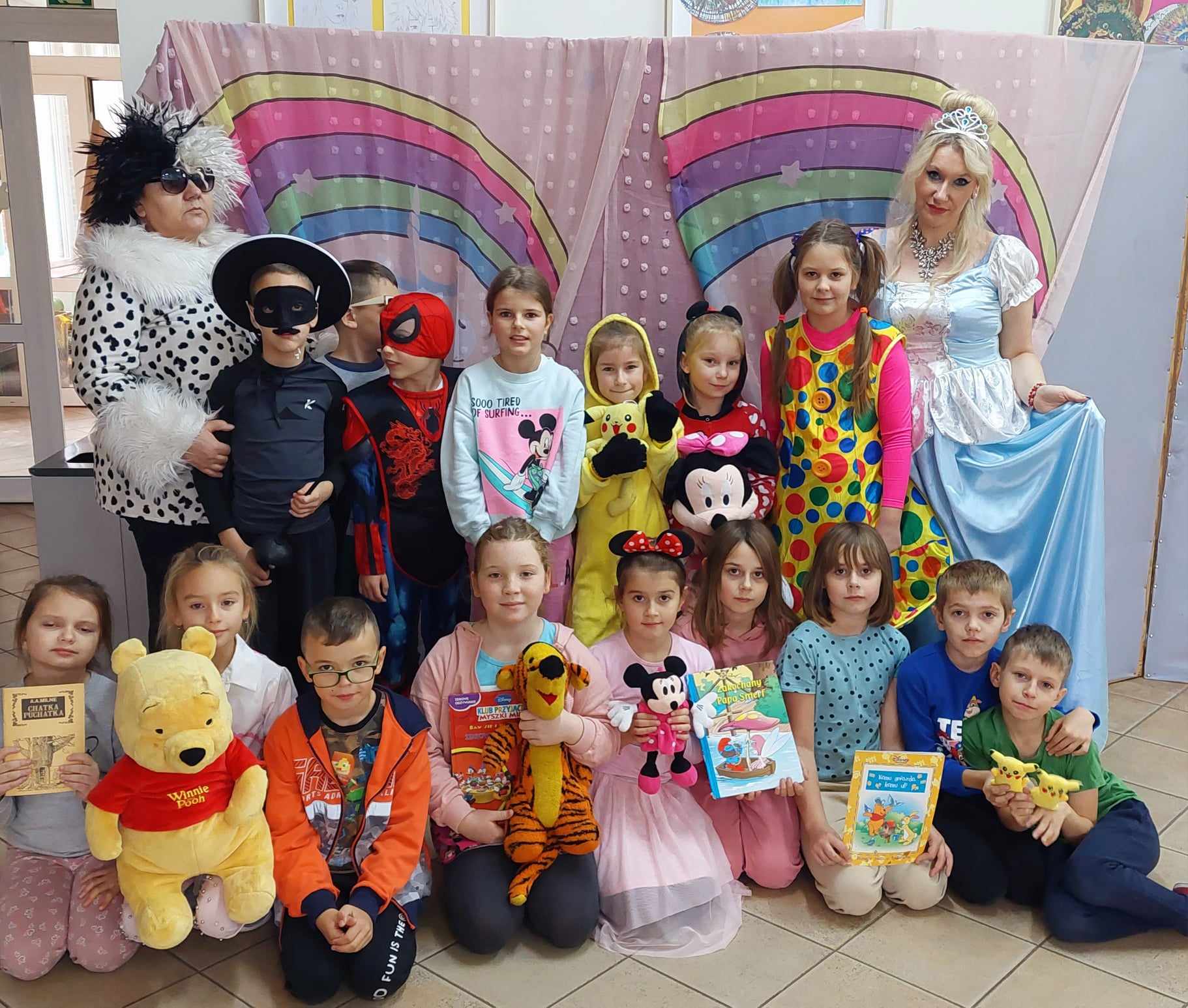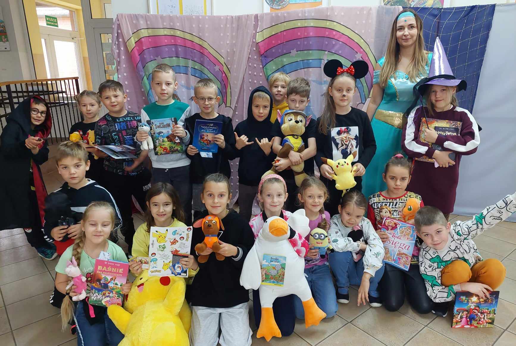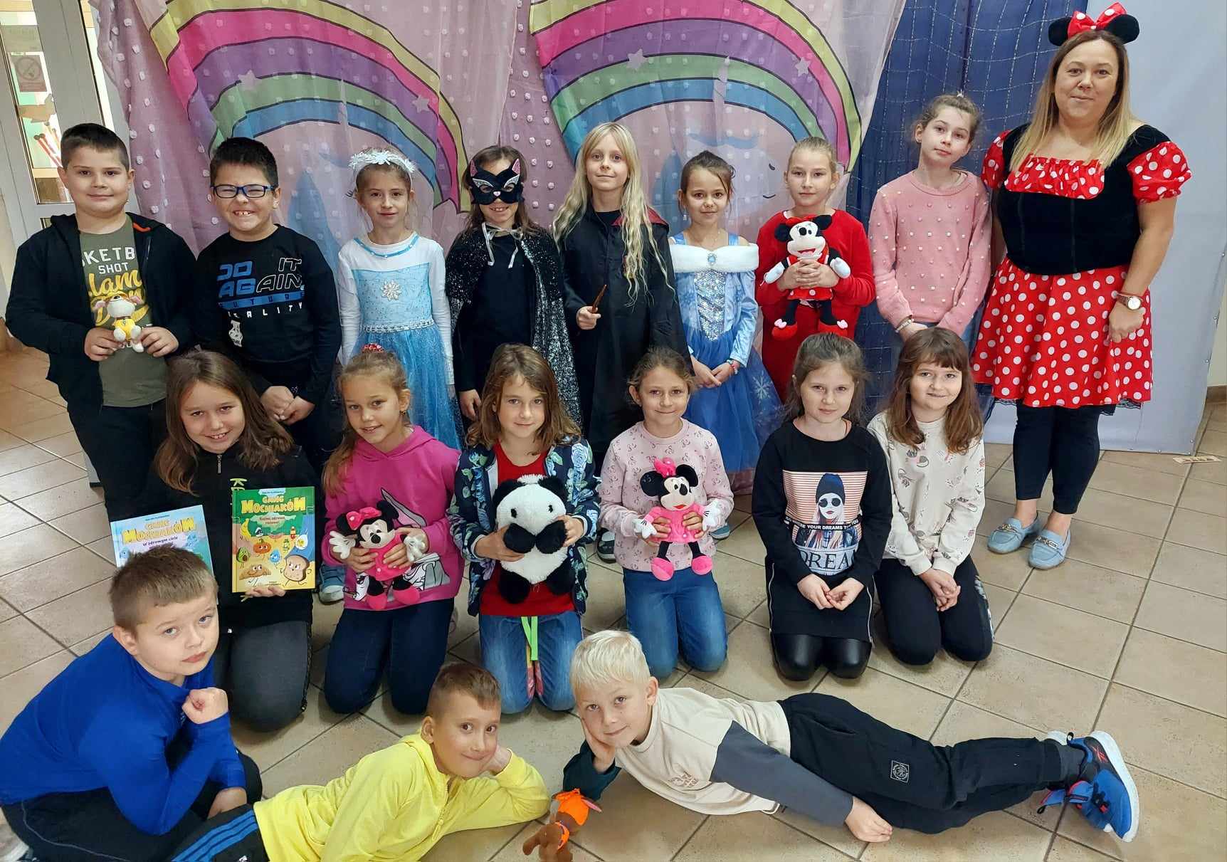 Każdego roku 5 listopada, na całym świecie obchodzony jest Międzynarodowy Dzień Postaci z Bajek, data nie jest przypadkowa gdyż została ona ustalona w dniu urodzin najsłynniejszego twórcy animacji i filmów dla dzieci Walta Disneya. Uczniowie klas 1-3 dziś uczcili ten dzień. Dzieci przygotowały kostiumy, przyniosły swoje ulubione bajki oraz maskotki. Z zaangażowaniem wykonywały przygotowane zadania i odgadywały zagadki. Panie również przebrałay się za znane bajkowe postacie![]()
