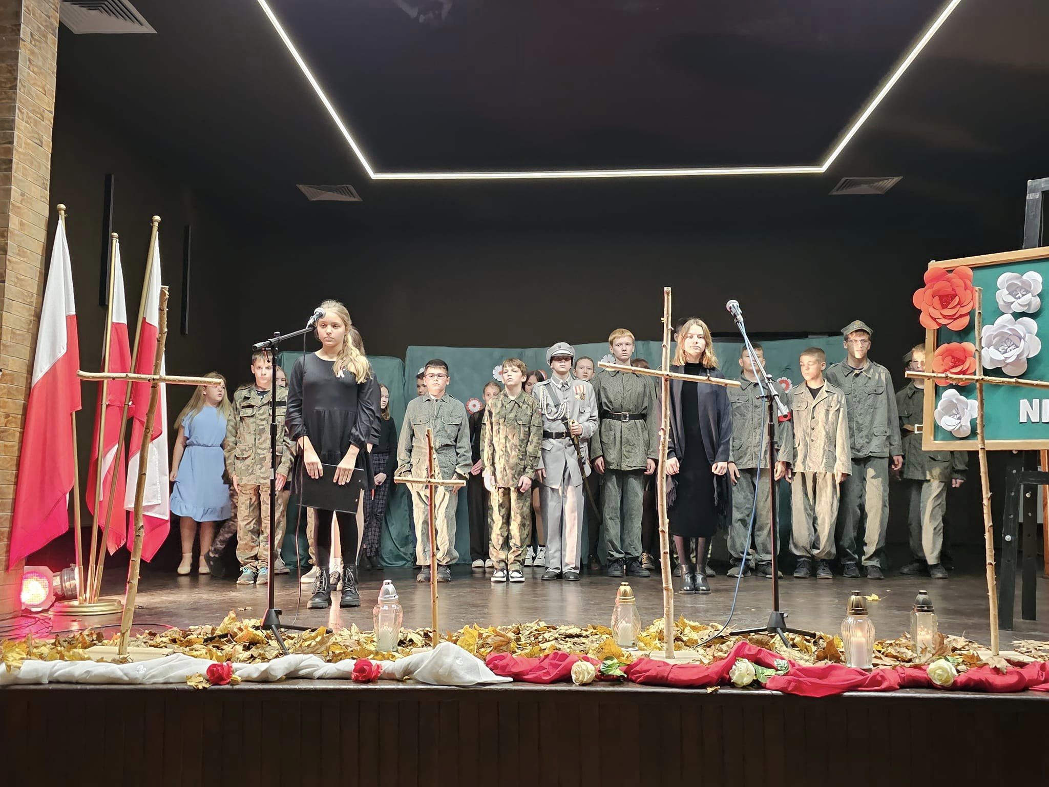 W przeddzień obchodów rocznicy Święta Niepodległości uczniowie Szkoły Podstawowej w Jutrosinie przypomnieli o doniosłych czynach sprzed lat. W inscenizacji, którą z tej okazji przygotowano uczniowie wprowadzili w patetyczny nastrój zgromadzonych w jutrosińskim Domu Kultury : Pana Burmistrza, Dyrekcję szkoły, Księdza Proboszcza, Pana Ireneusza Mikołajewskiego, grono pedagogiczne oraz swoich rówieśników. Przypomnieli dramatyczną zmagania Polaków i ich poświęcenie w walce o niepodległość. Przypomnieli najważniejsze wydarzenia historyczne ze 123 lat niewoli i determinację naszych przodków w walce o wolną Polskę.