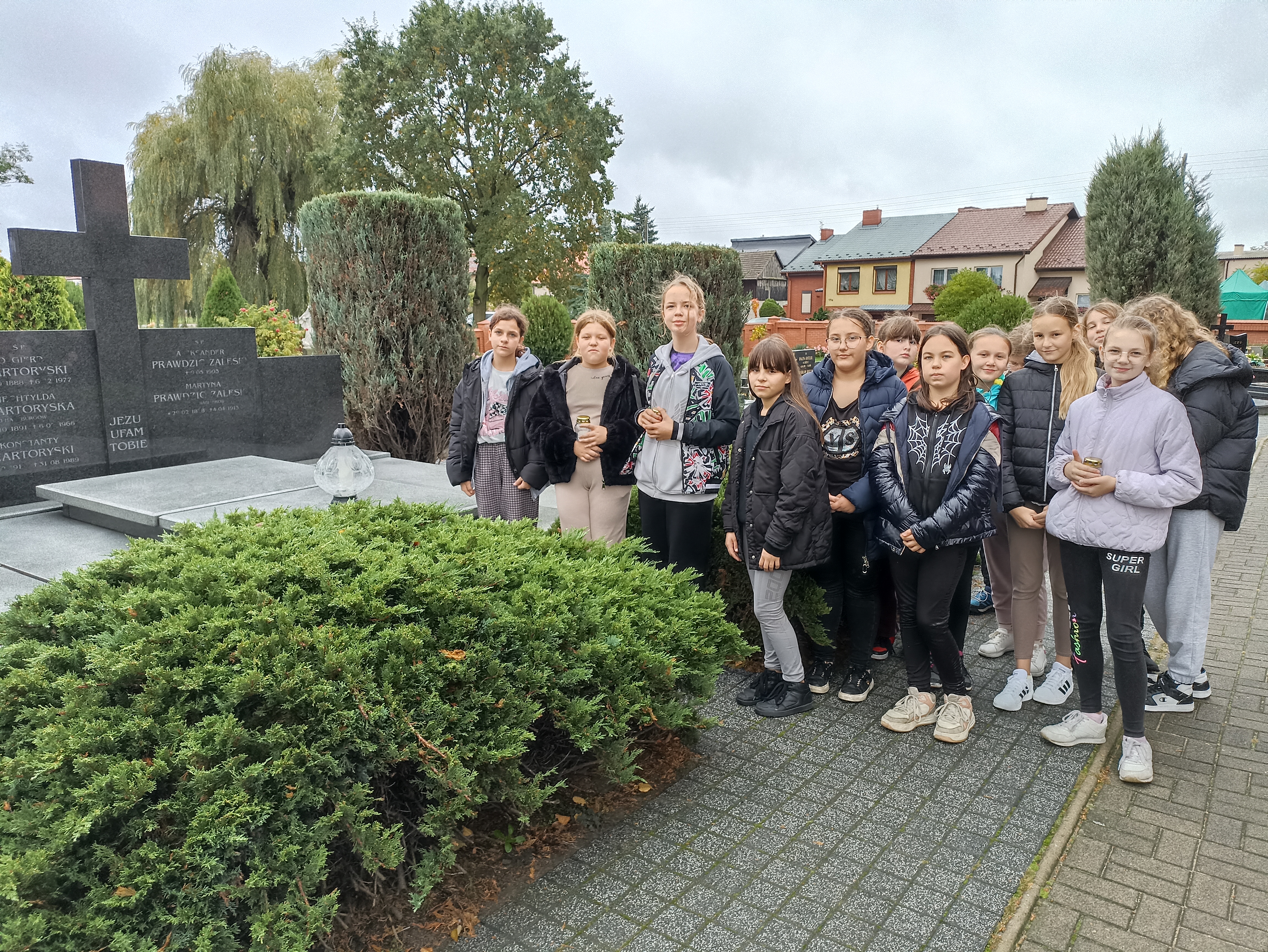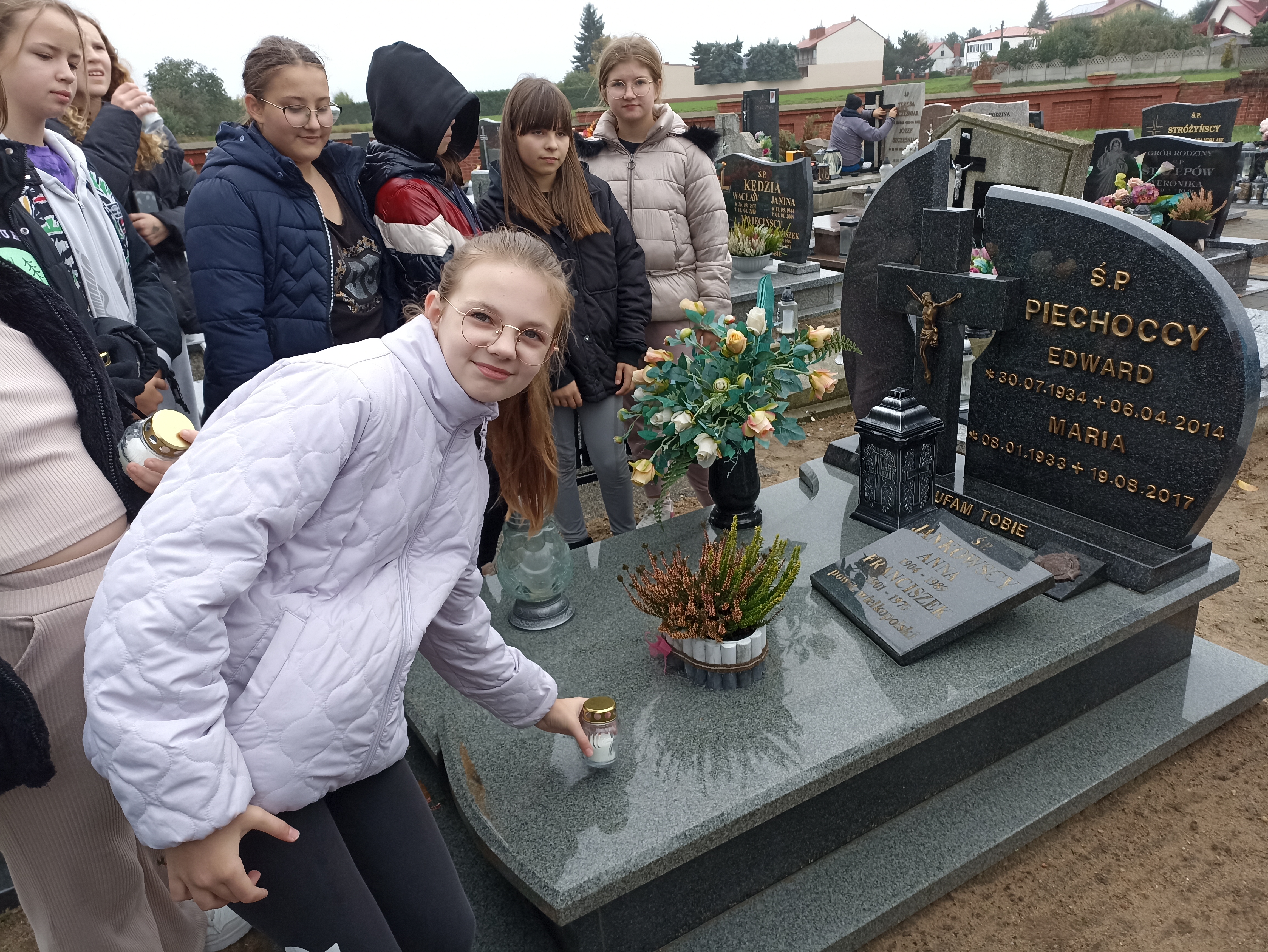 Odwiedzając cmentarz nasi uczniowie uporządkowali także i zapalili znicze na dwóch bezimiennych grobach. Młode pokolenie uczy się naszego pięknego polskiego zwyczaju – pamiętamy o tych , których już nie ma i dbamy o ich mogiły by ta pamięć trwała jak najdłużej.