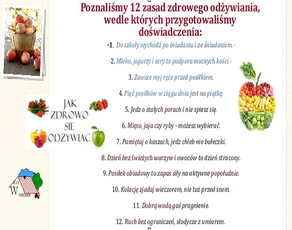 Śniadanie poprzedziliśmy zajęciami, które miały na celu uświadomienie dzieciom, jak ważne jest spożywanie rano zdrowego posiłku oraz jak będzie przebiegała organizacja tego dnia w naszej klasie. Uczniowie poznali 12 zasad zdrowego odżywiania się oraz przypomnieli reguły zachowania się przy stole.