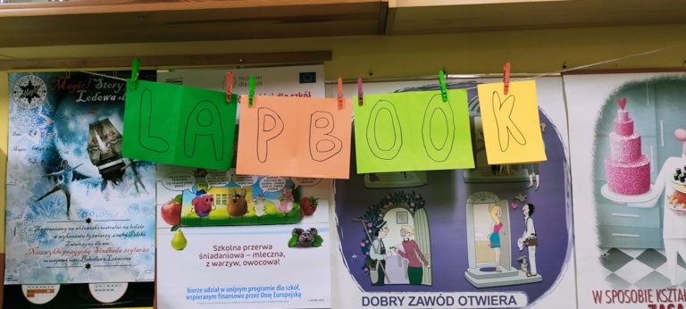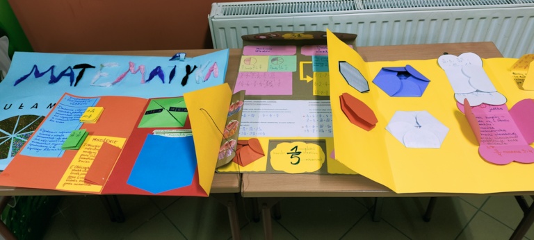 Tuż przed wybuchem pandemii w holu szkoły przy ul. Szkolnej zorganizowano wystawę lapbook-ów wykonanych przez uczniów klasy 5b, 5c i 6a. Dla uczniów klas piątych lapbook był zebraniem wiadomość z działu „Ułamki zwykłe” a dla szóstoklasistów podsumowaniem działu „Pola wielokątów”.