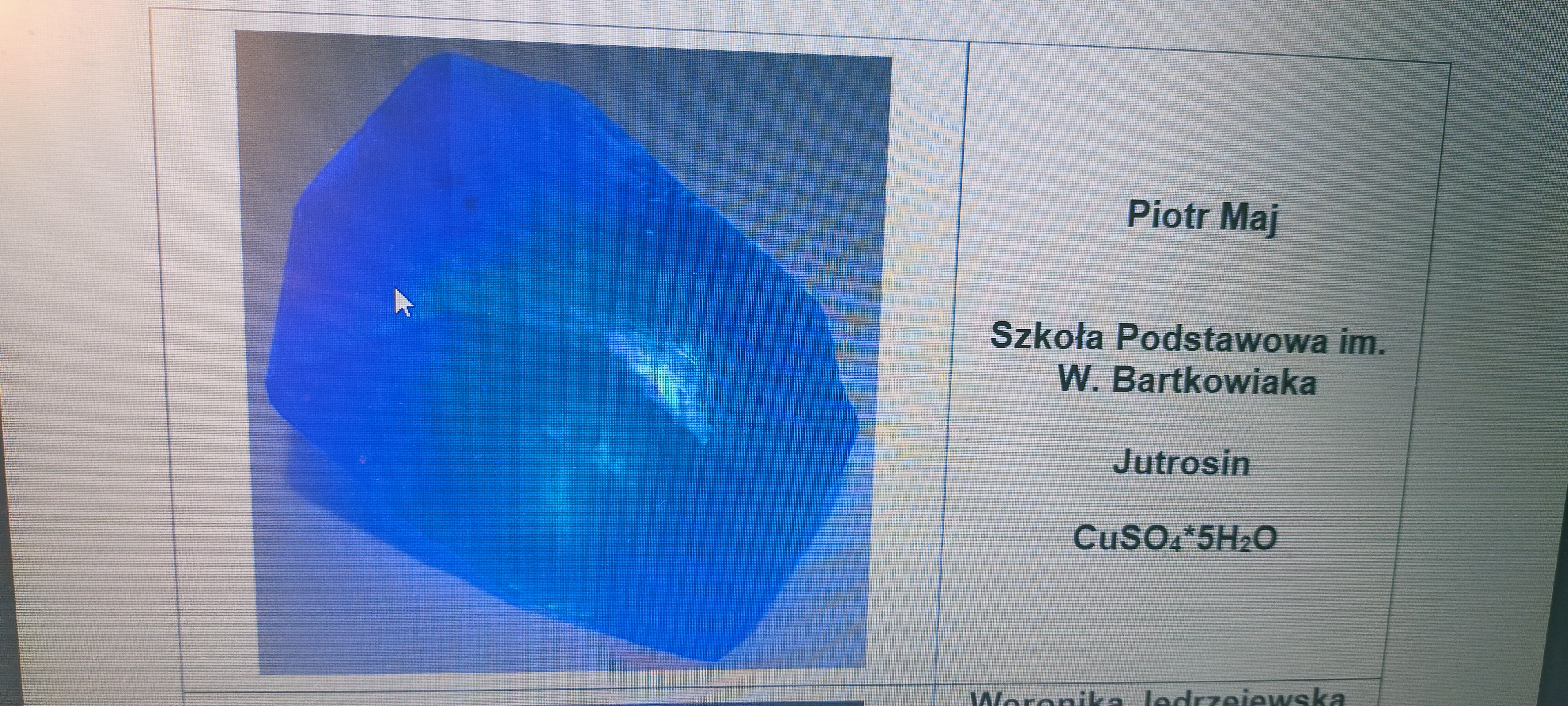 Oto zdjęcia wyhodowanych przez Natalię, Poitra i Oliwiera kryształów i opis hodowli.