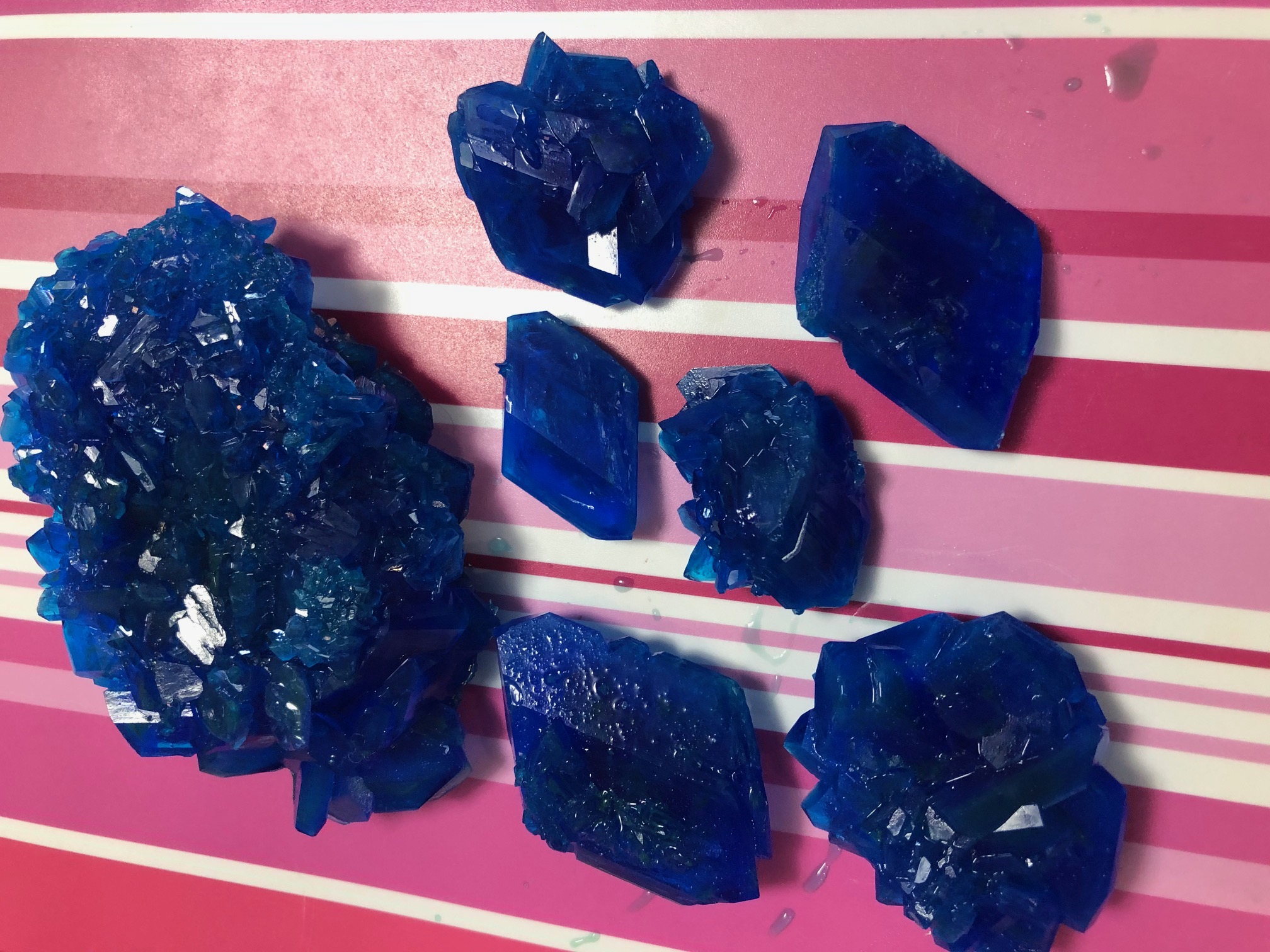 5. 24.04.2020 od ostatniej zmiany roztworu przełożony został w miejsce, w którym była odpowiednia temperatura, dzięki czemu kryształy zaczęły znów rosnąc.