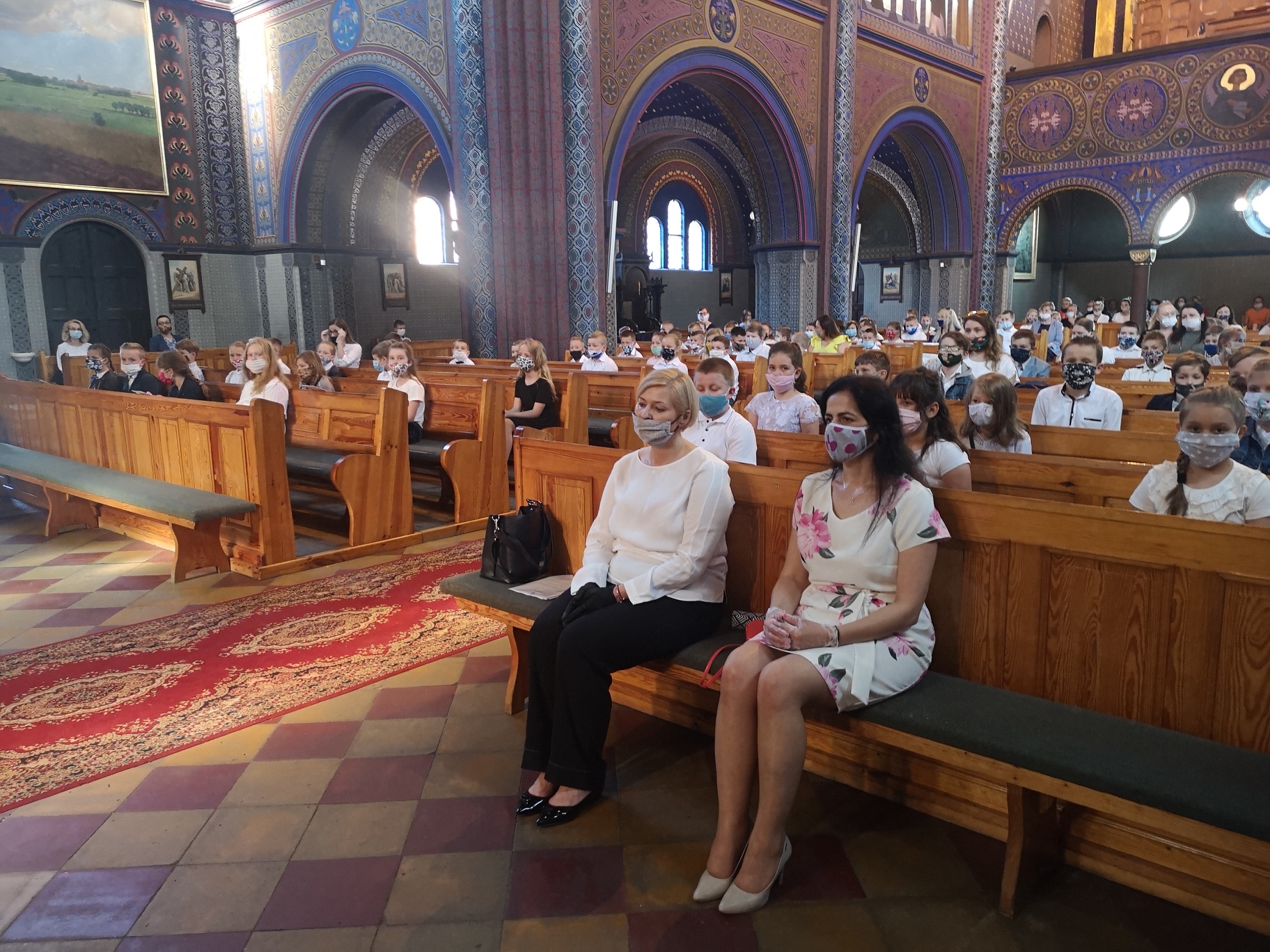 W kościele obowiązują zasady zachowania bezpieczniejszych odległości oraz obowiązek zakładania maseczek i rękawiczek.
