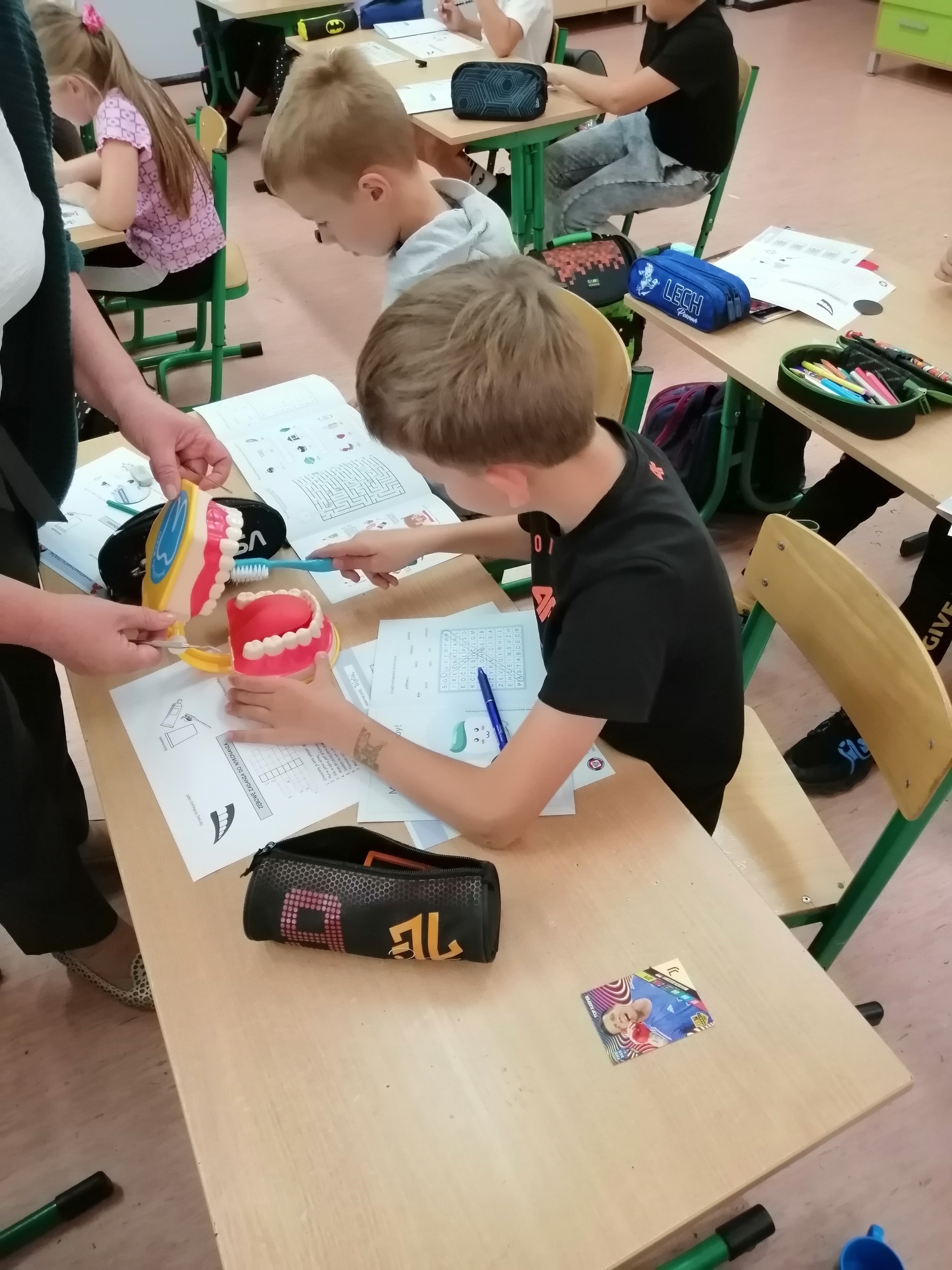 Uczniowie klas trzecich brali udział w zajęciach na temat higieny jamy ustnej, realizowanych w ramach wojewódzkiego projektu edukacyjnego „Mam zdrowe zęby”.