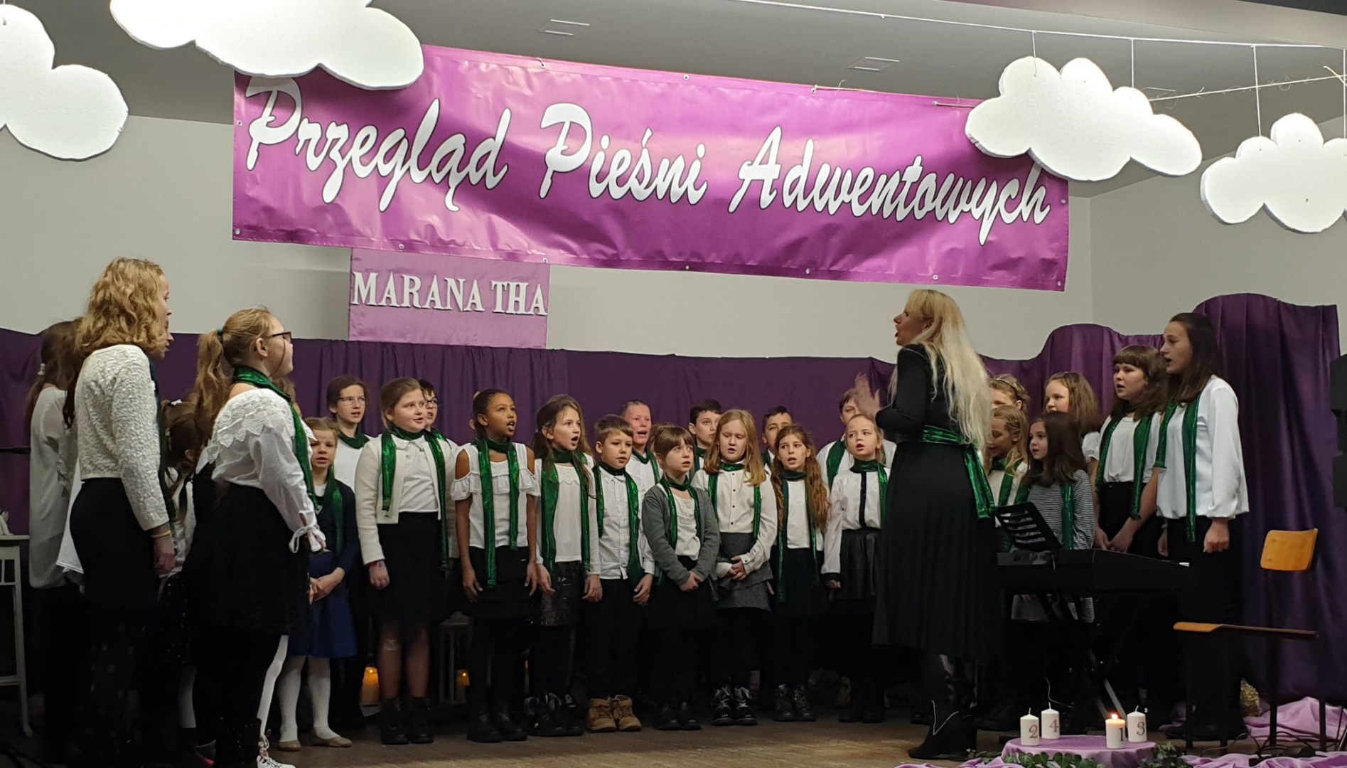 W dniu 04.12.2019 chórek ,, Jutrosińskie nutki'' reprezentował szkołę na Przeglądzie Pieśni Adwentowych, który odbył się w odnowionej świetlicy w Szkaradowie. Zaprezentowało się tam ponad dwadzieścia różnych formacji muzycznych. 40 osobowy chórek z Jutrosina z pieśnią ,,Przyjdź Jezu, przyjdź.'' został doceniony przez Jury i otrzymał słowne Wyróżnienie. Uwagę jury przykuł też piękny wokal Kai Wrzeszcz w pieśni ,,Mario, czy wiesz,, i ją również słownie wyróżniono. Uczniowie biorący udział w tym nastrojowym Przeglądzie mieli okazję wysłuchać wielu nowych wykonań jakże trudnego i nieznanego repertuaru , który rozbrzmiewa w kościołach w oczekiwaniu na Święta Bożego Narodzenia. Organizatorzy zadbali o piękny klimat i poczęstunek dla wszystkich dzieci a uczestnicy Przeglądu wrócili do szkoły z świątecznymi upominkami.