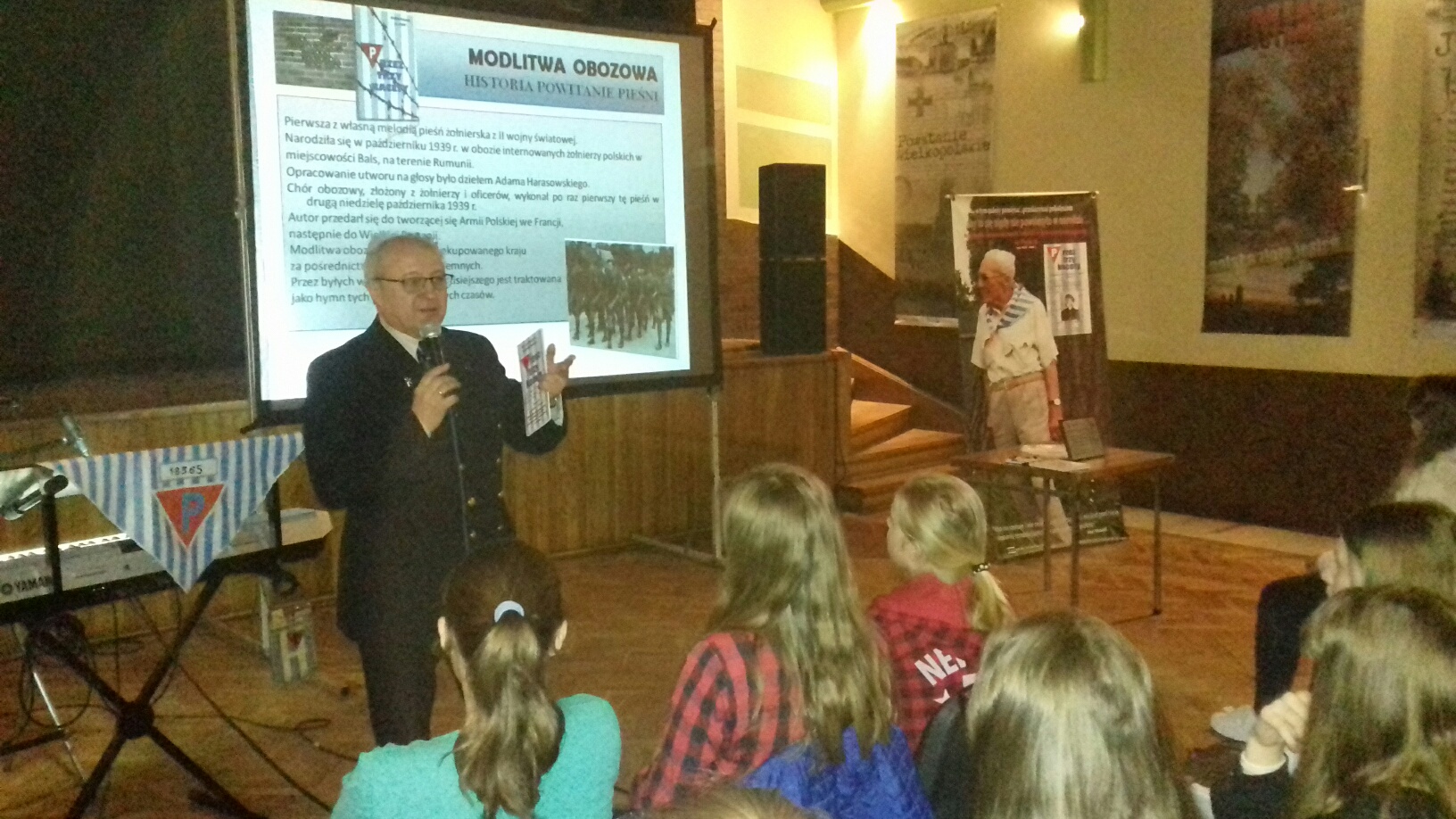 14 maja uczniowie naszej szkoły z klas starszych uczestniczyli w bardzo pouczającej lekcji z historii Polski. Pan Piotr Firkowski w bardzo interesujący sposób przybliżył naszym uczniom losy Polaków ,którzy w czasie II wojny światowej przebywali w nazistowskich obozach koncentracyjnych. Wyjątkowość tej lekcji stanowił fakt, że prowadzący posługiwał się wspomnieniami swojego ojca, pana Mirosława Firkowskiego ps. Sławek, który od grudnia 1940r. do kwietnia 1945r. przebywał w trzech różnych obozach koncentracyjnych, m.in. w Auschwitz- Birkenau. Uczniowie wysłuchali hymnu obozowego, poznali okoliczności aresztowania pana Firkowskiego, obejrzeli film „ Dzień jak co dzień” i wysłuchali nagranych wspomnień naocznego świadka tych okrutnych czasów. Ta trudna lekcja historii uwrażliwiła naszą młodzież na krzywdę ludzką i na poświęcenie naszych przodków, którzy oddali swe życie za naszą wolność.